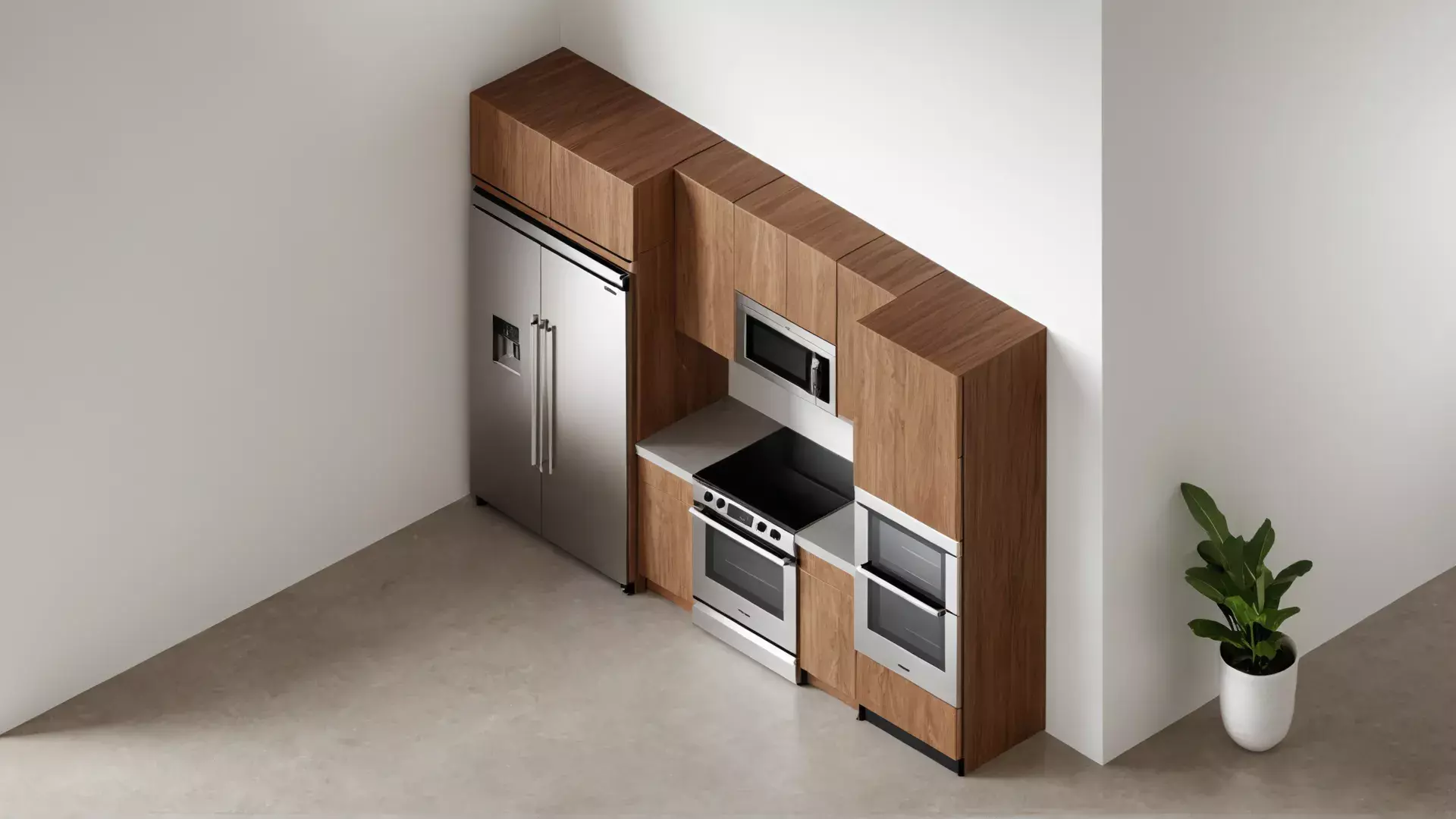 All appliances are fully modeled with real, existing dimensions from KitchenAid, ensuring accurate scale and realistic integration within architectural and interior design workflows.
