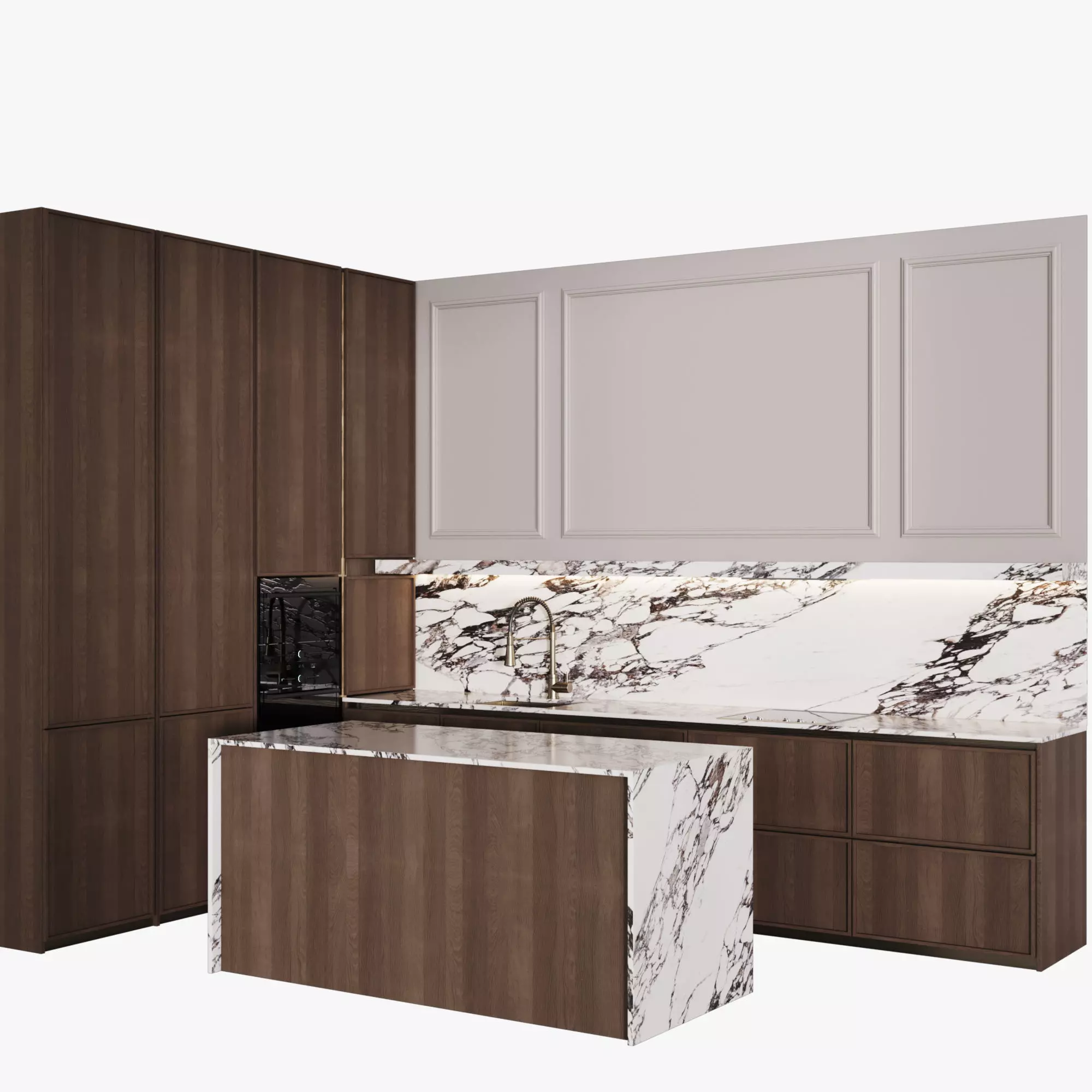 Kitchen with L-shaped island in a modern style.
