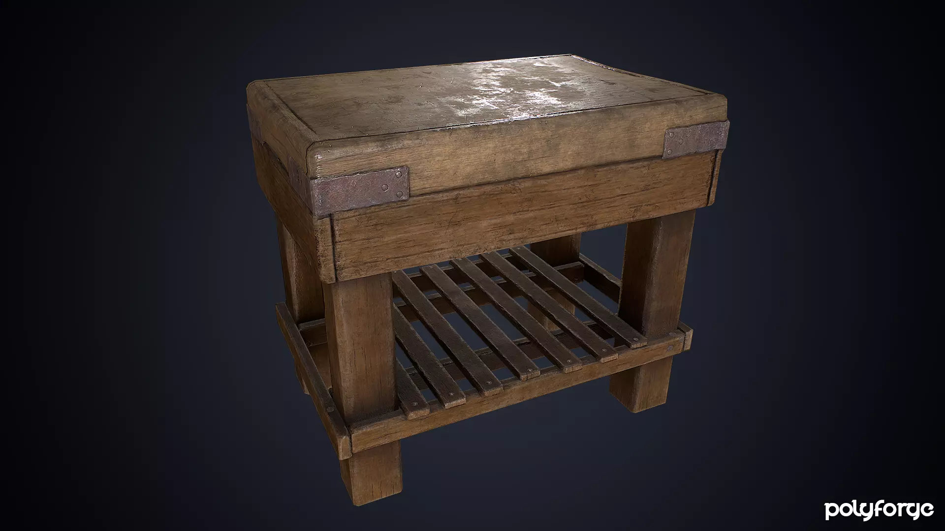 Old Butchers Block - Rustic Antique Cutting Table Low-poly 3D model