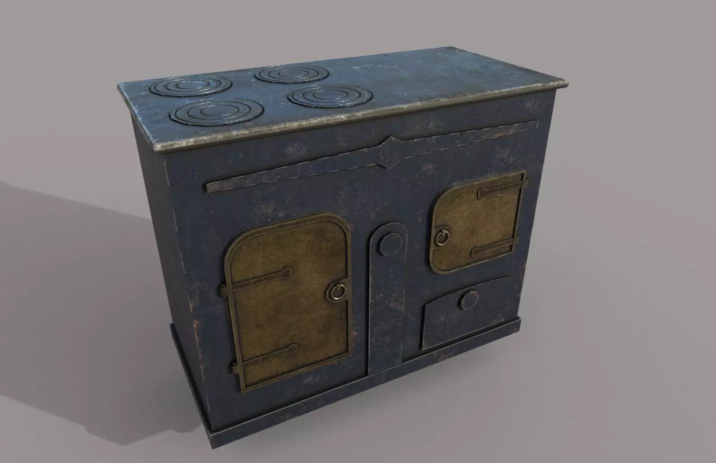 3D Low-poly Old Stove modeled in Maya and textured in Substance Painter, ready for games.