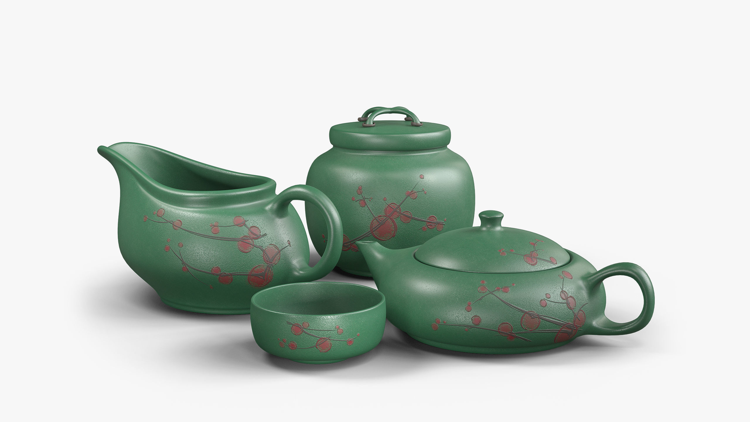 Realistic 3D poly model of Oriental tea set