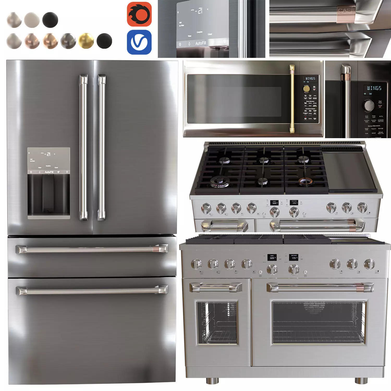 pack 06 kitchen collection GE cafe appliances 3D model