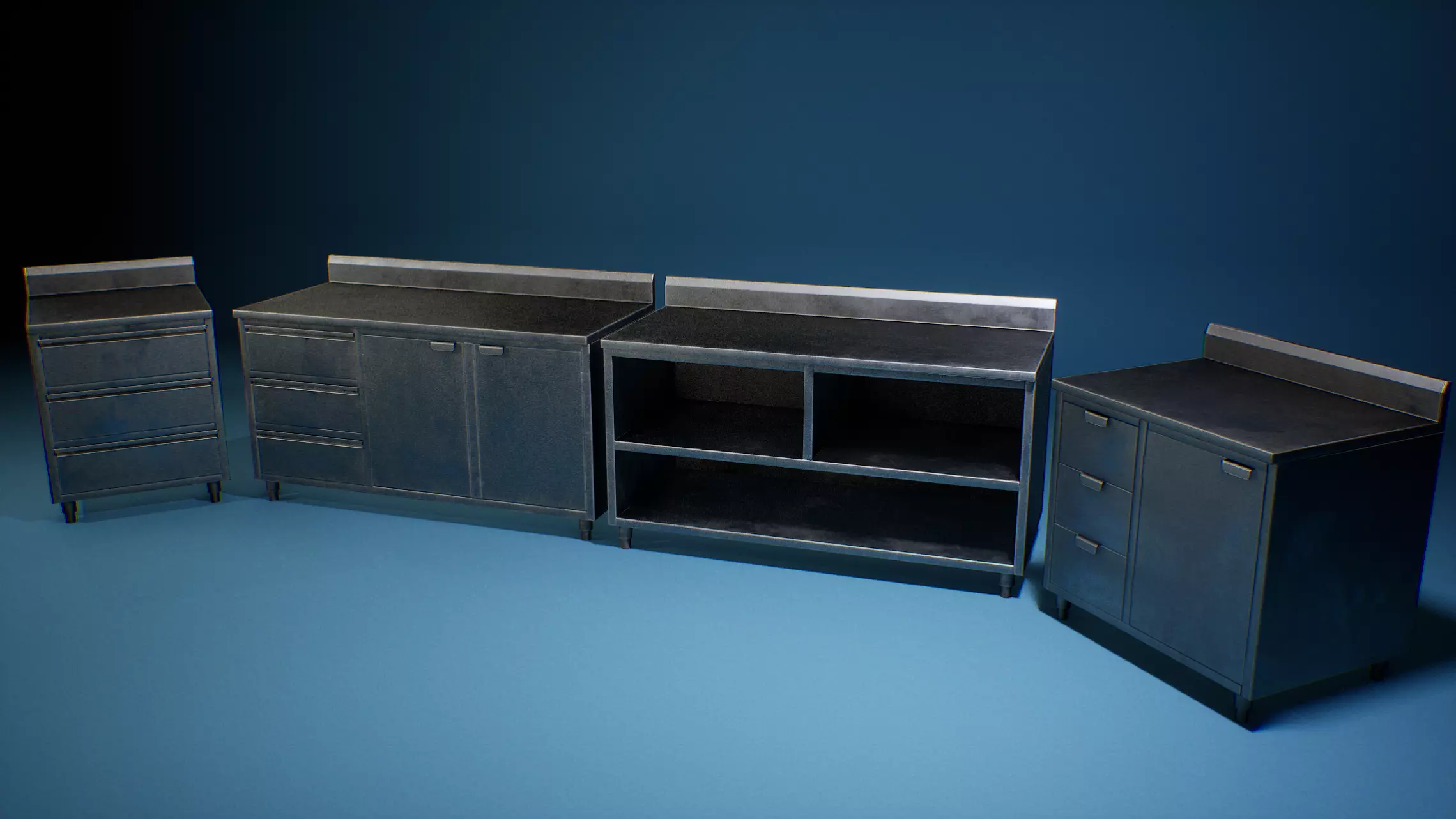 High Quality - fully textured PBR game ready model of a commercial restaurant cabinet set.