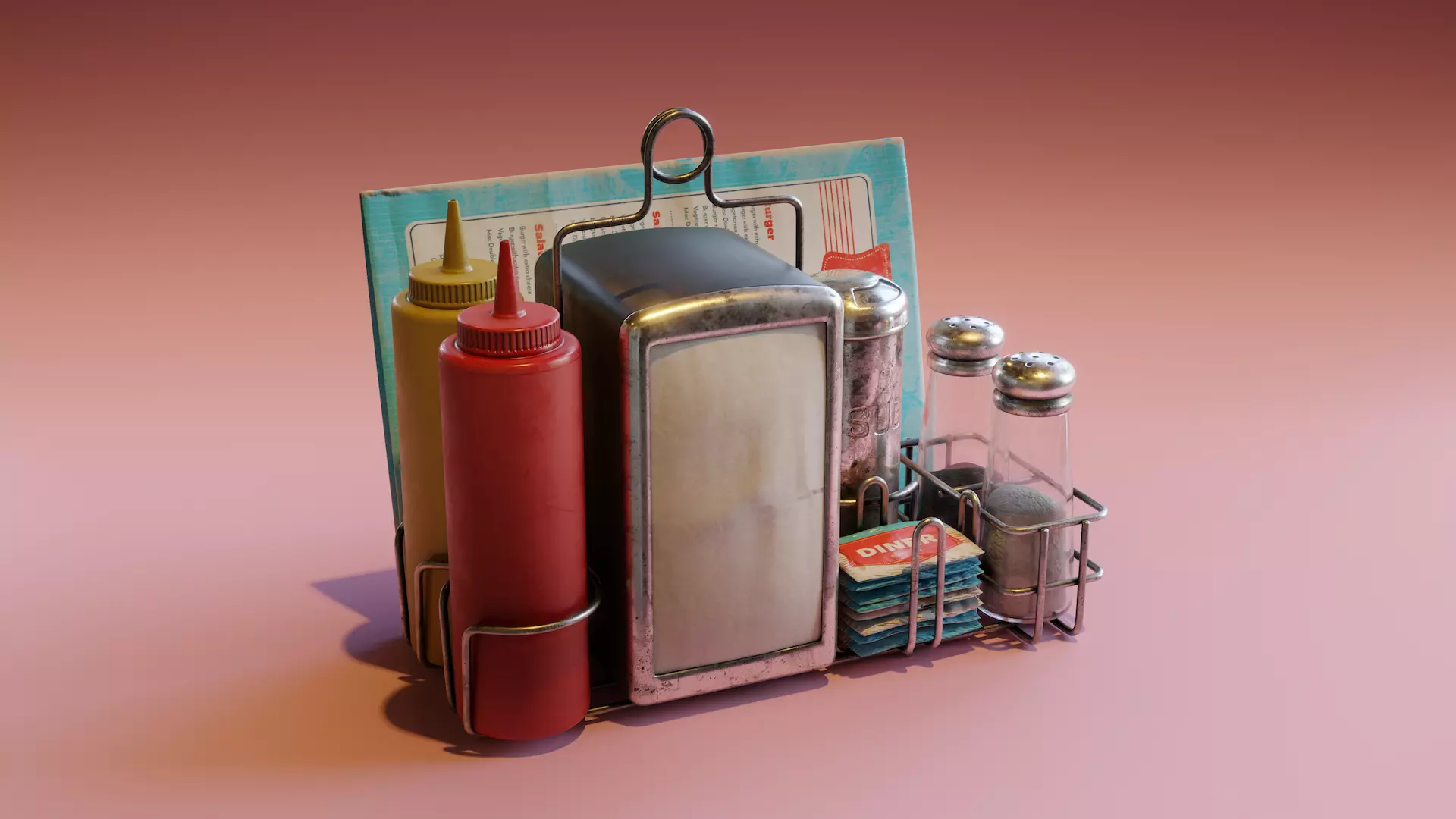 This Retro Diner Condiment Caddy model is created with Blender and textured in Substance Painter. You can use this model in your games, visual projects etc.