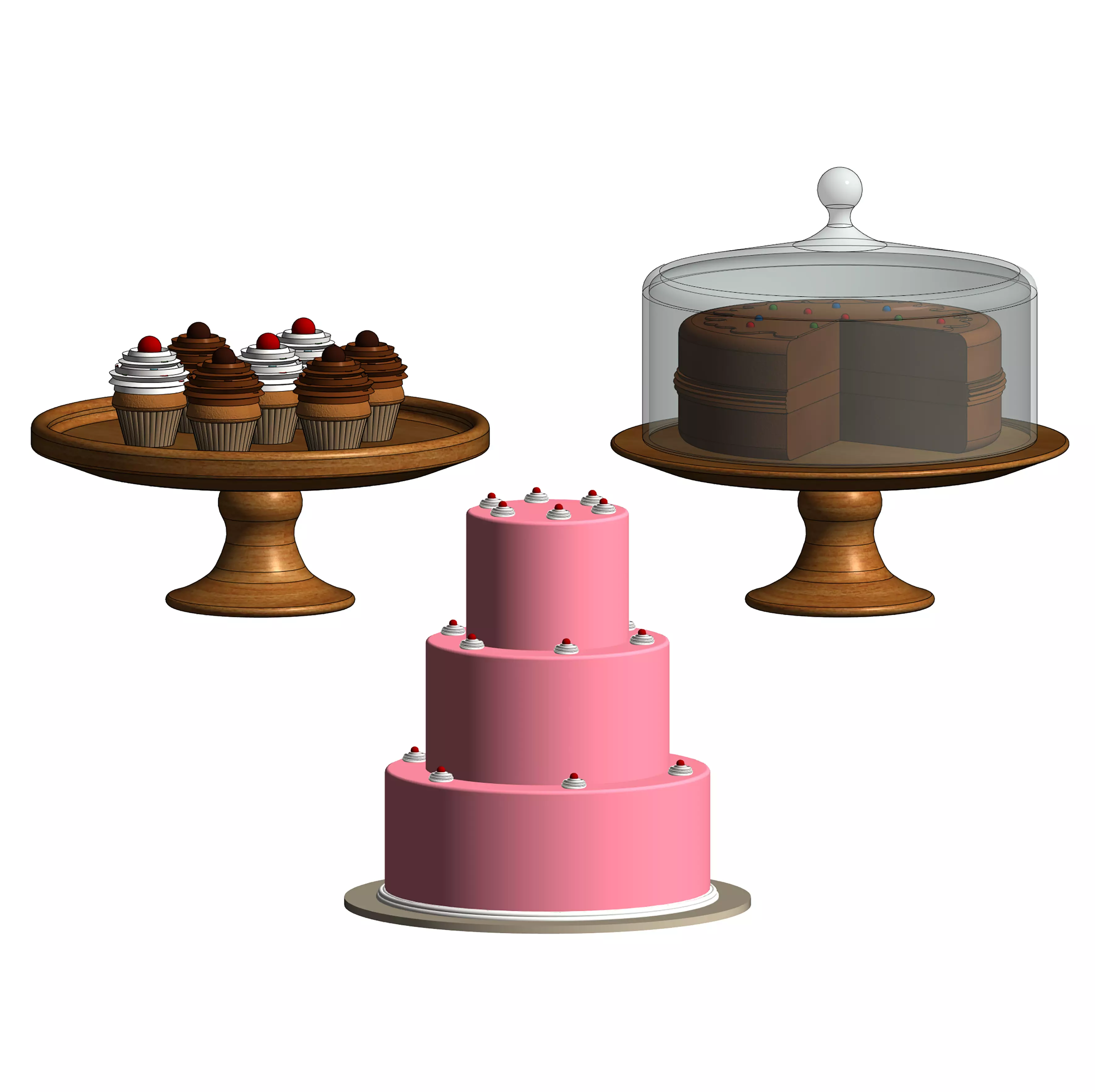 Usage: Perfect for kitchen scenes, bakery interiors, wedding event visualization, and decorative furniture presentations.