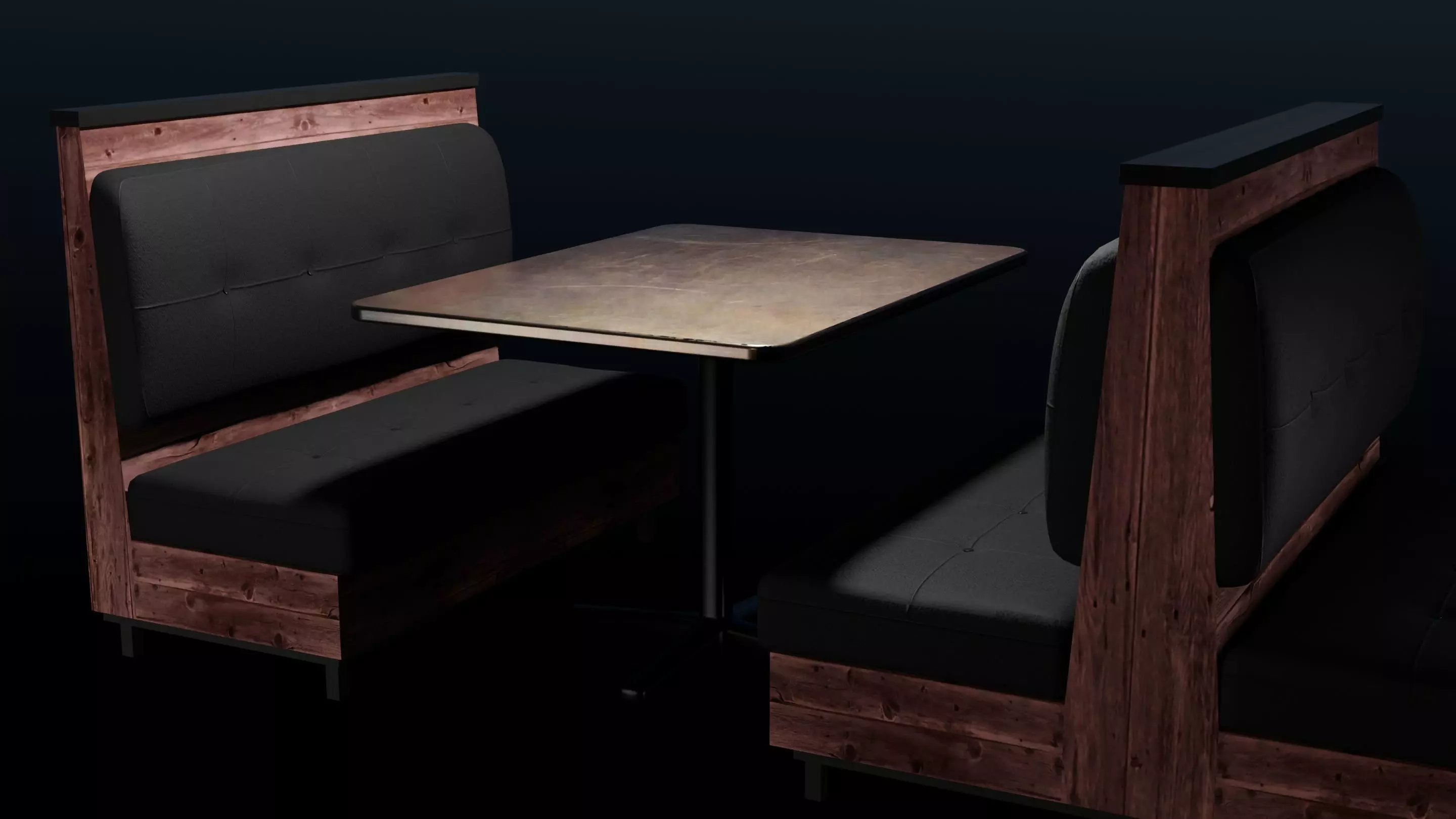 A simple rustic-flavored restaurant booth, designed with a single master material/texture set and a set of both LOD0 and LOD1 meshes. Available in .blend, .obj, and .fbx.
