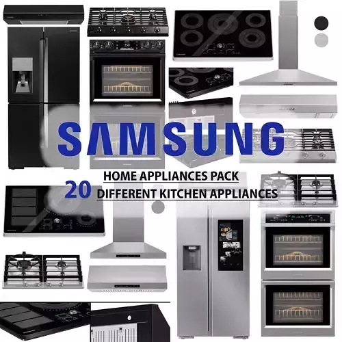 SAMSUNG home appliances set 01File created in 3ds max 2018/2015 + OBJ + Corona + Vray REFRIGERATOR: RF22K9381SR183*91.5*75.7 cm DOUBLE OVEN : NV51K6650DS 30”127.4*74.1*61 cm HOOD : NK24T4000US 24”61*50*12.78 cm GAS : NA30N7755TS 30”77*54*7 cm UV MAPPED: YES for necessary partsPolys : 625,049Verts : 637,064