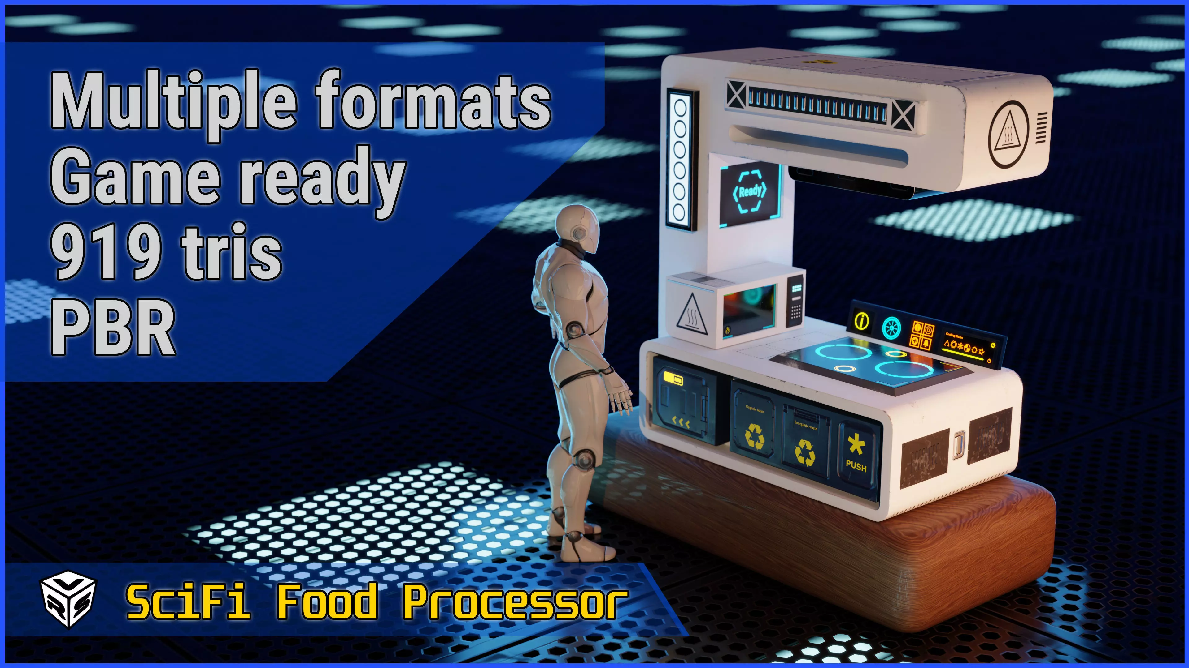 Vertex Rage Studio presents a cutting-edge solution for futuristic food preparation with the SciFi Cooking Station / Food Processor. Often overlooked, but essential appliance for any sci-fi or space-themed environment. This 3D model will fit perfectly in survival games, space bases or futuristic kitchens. Ideal for scifi RPG or crafting games, where players prepare food to restore health, enhance abilities, or craft unique recipes.
