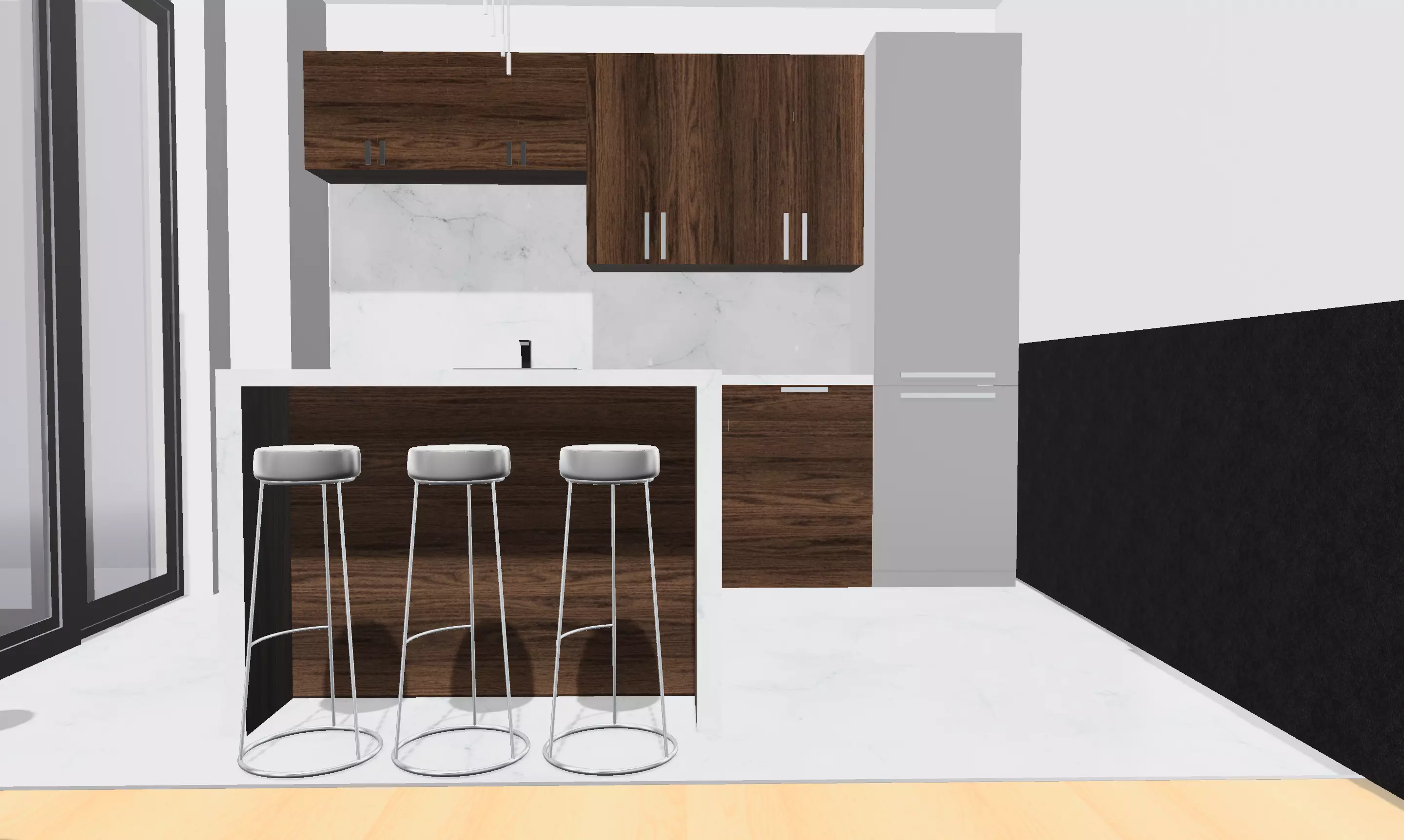 The model has material settings that define how surfaces look (color, shine, transparency, etc.).
