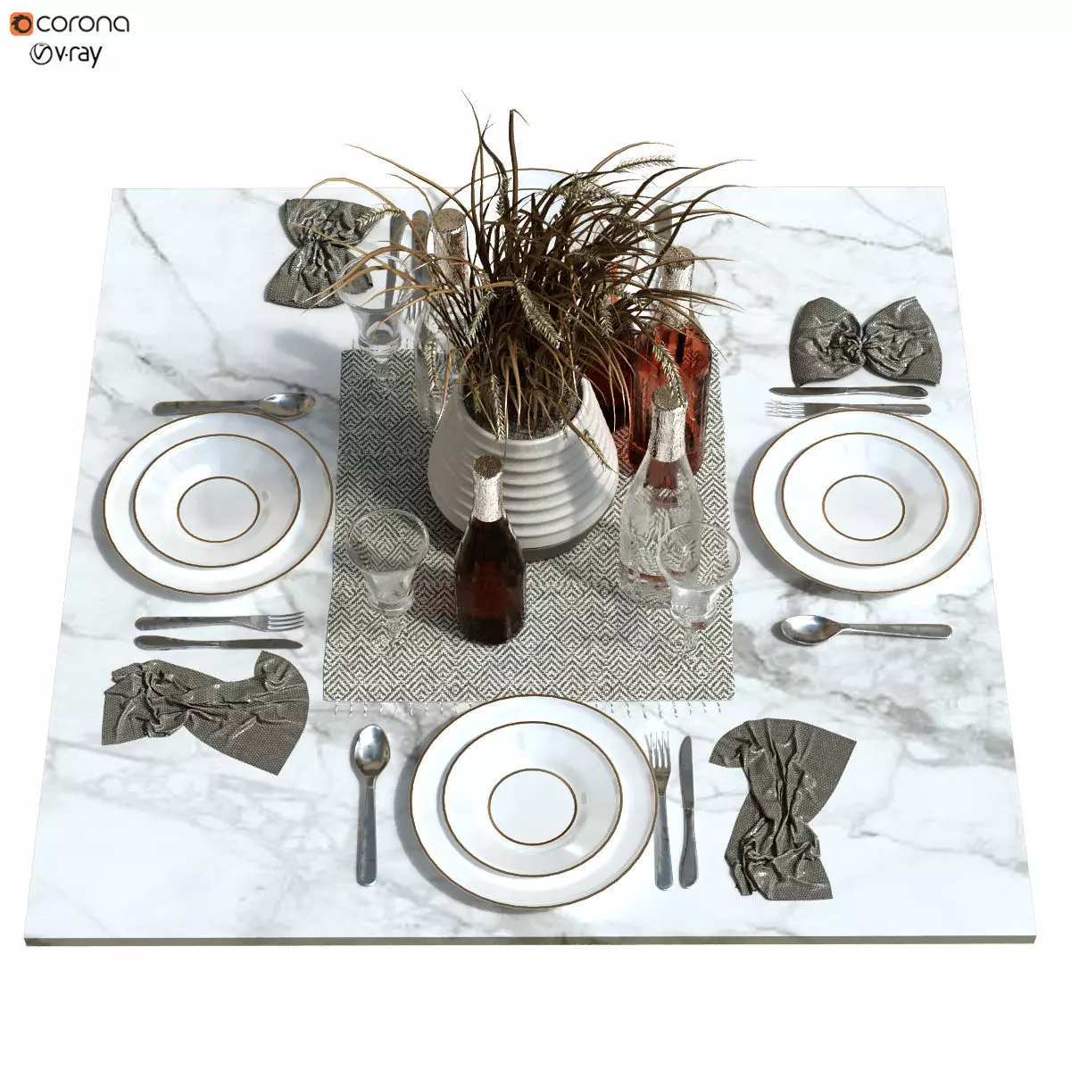 Name: tableware_set_159Polys: 318709verts: 321430XForm: YesModel Parts: 13Render: Corona, vrayFormats: 3Ds Max 2015, OBJ, FBX