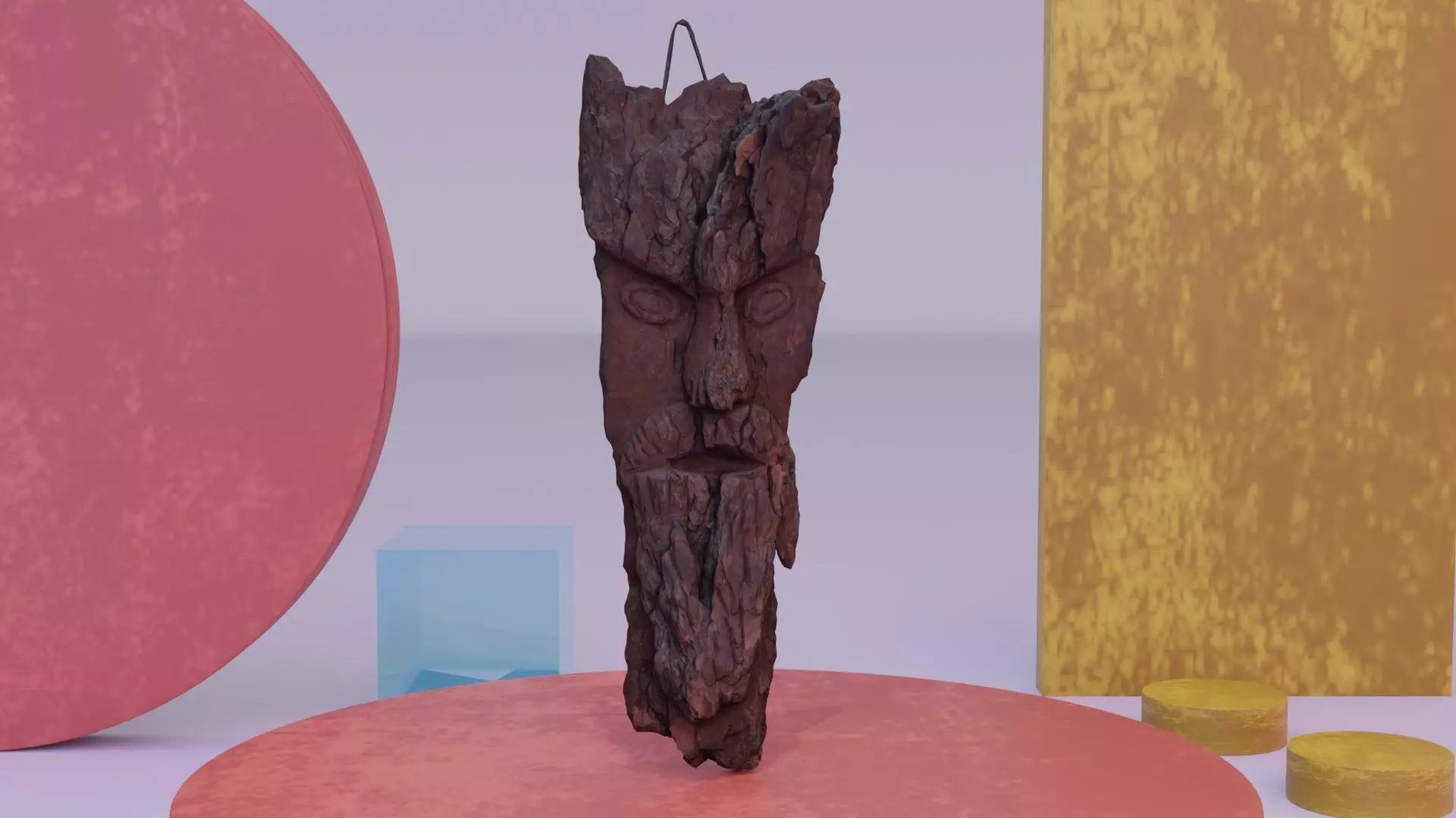 This is a photorealistic 3D model of the handmade tree bark mask.