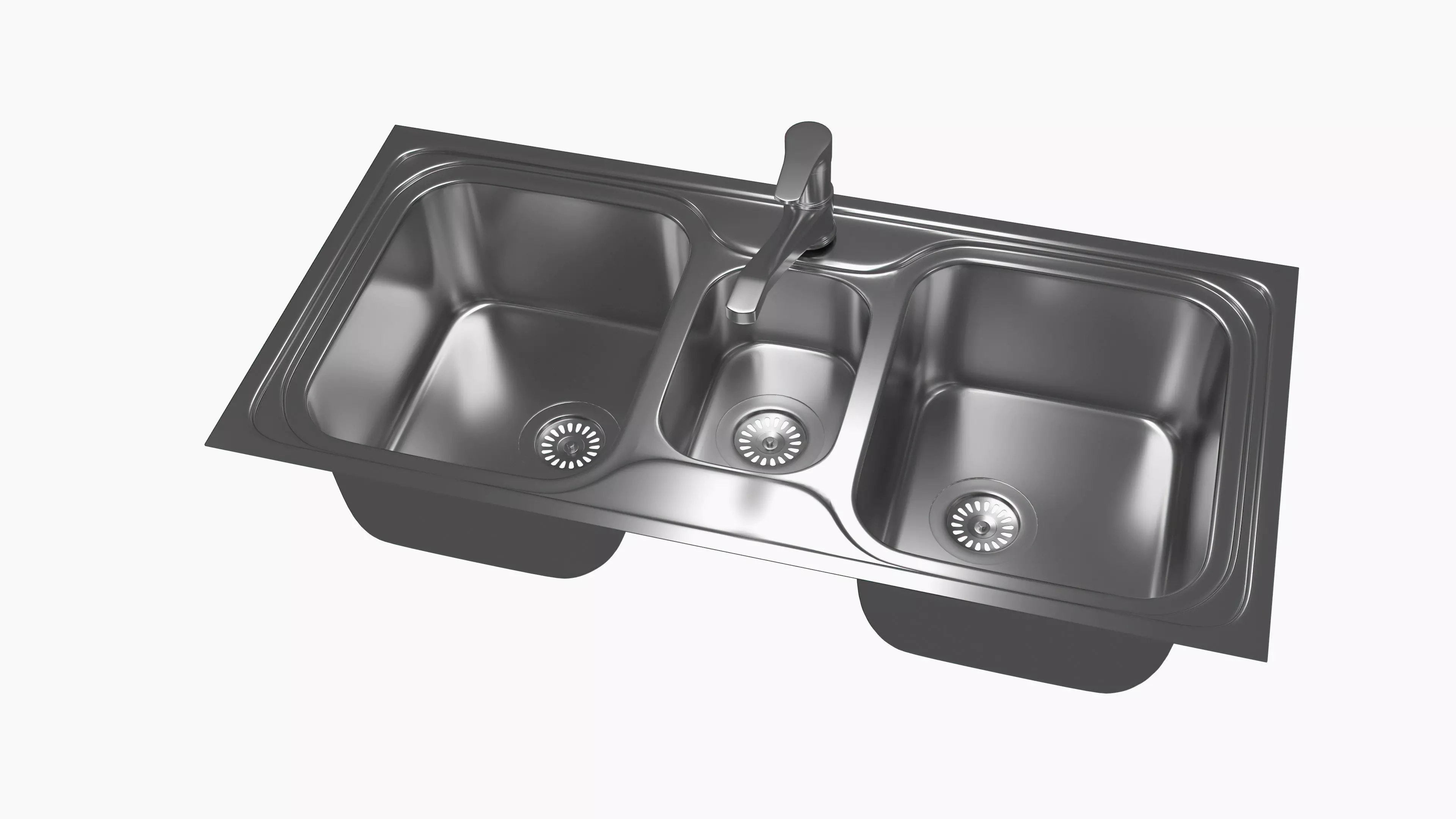 Triple metallic sink made in 3DsMax 2023. Units are in mm. You can find also another formats: dxf, obj, fbx, dwg and a 32SMax 2020. The Shell modifier is assigned to the model.Lights and camera are included.