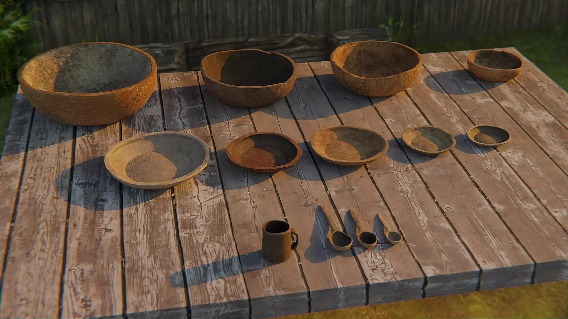 Wooden old dishes Low-poly 3D model