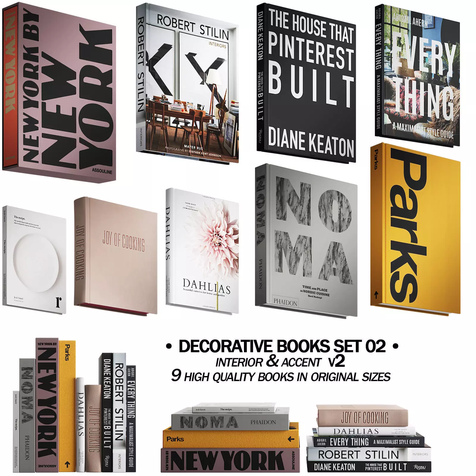 3d model of a decorative set of books for a coffee table, shelves, table, bedside tables, or any other premises.