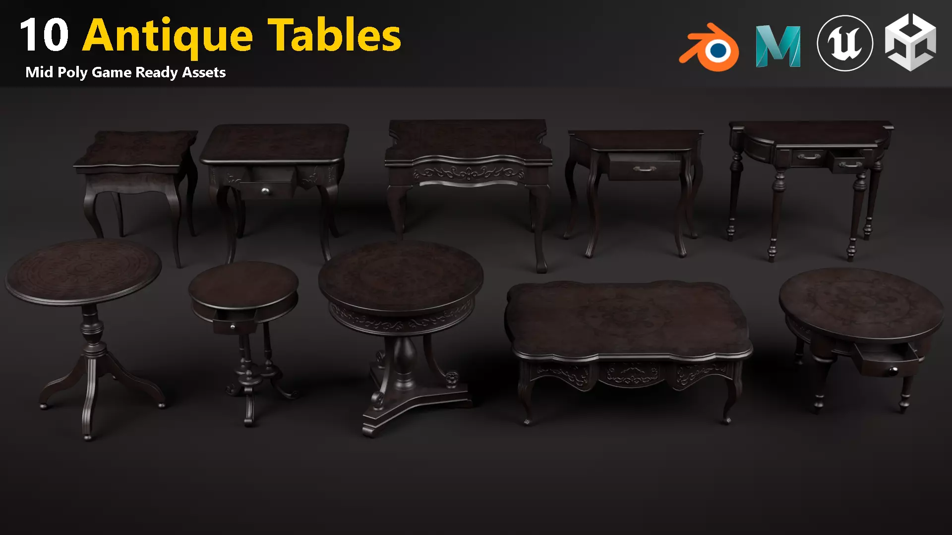 Enhance your game environments with this collection of 10 antique tables, crafted with game-ready mid-poly geometry (2K–12K polygons) and 4K PBR textures for ultra-realistic visuals. Designed for PC games, these assets are optimized for Unreal Engine, Unity, and other 3D platforms.