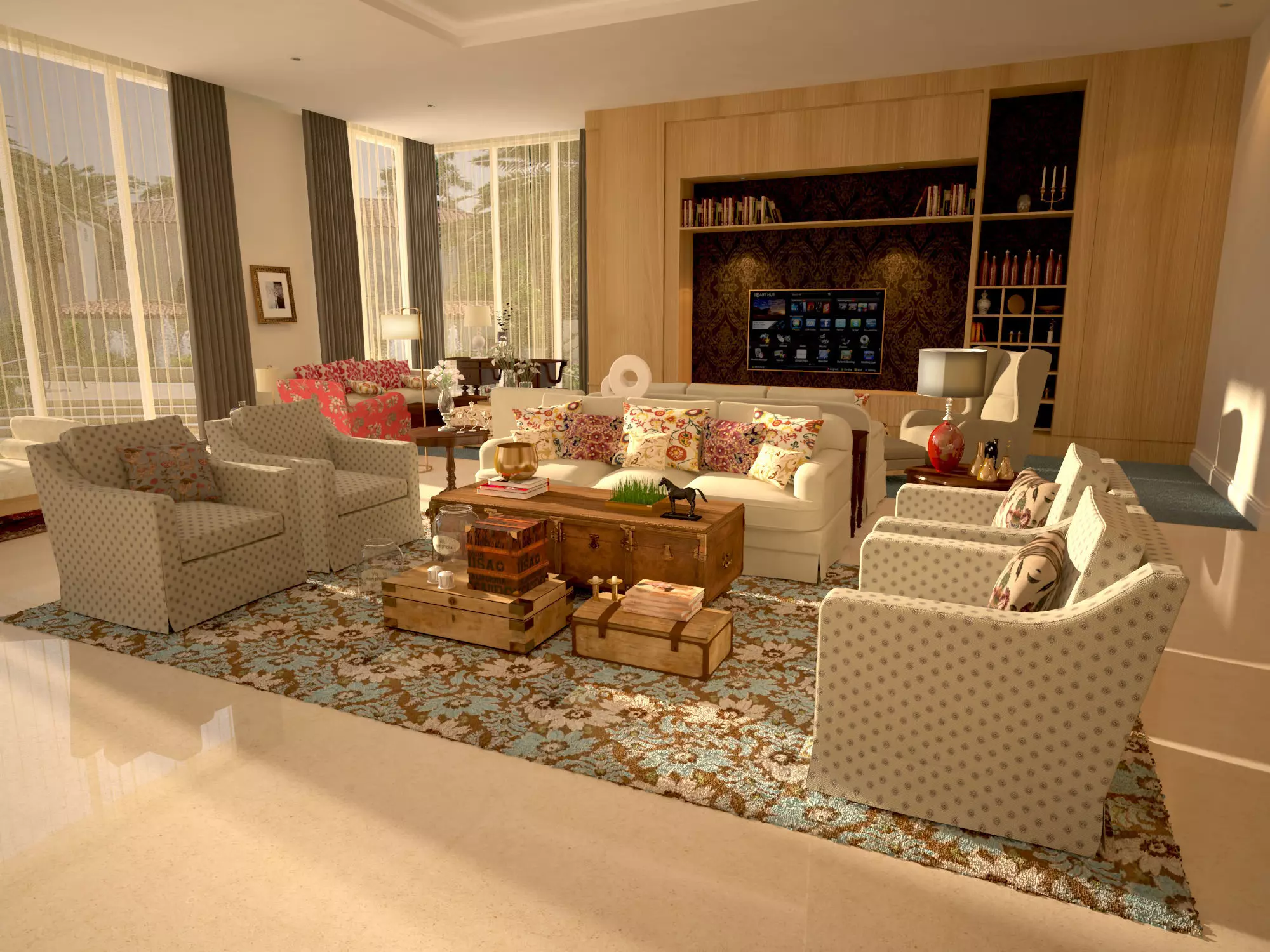 This render reflects high attention to detail and aesthetic balance, making it perfect for interior designers, architects, or 3D artists looking to showcase or incorporate premium living room concepts.
