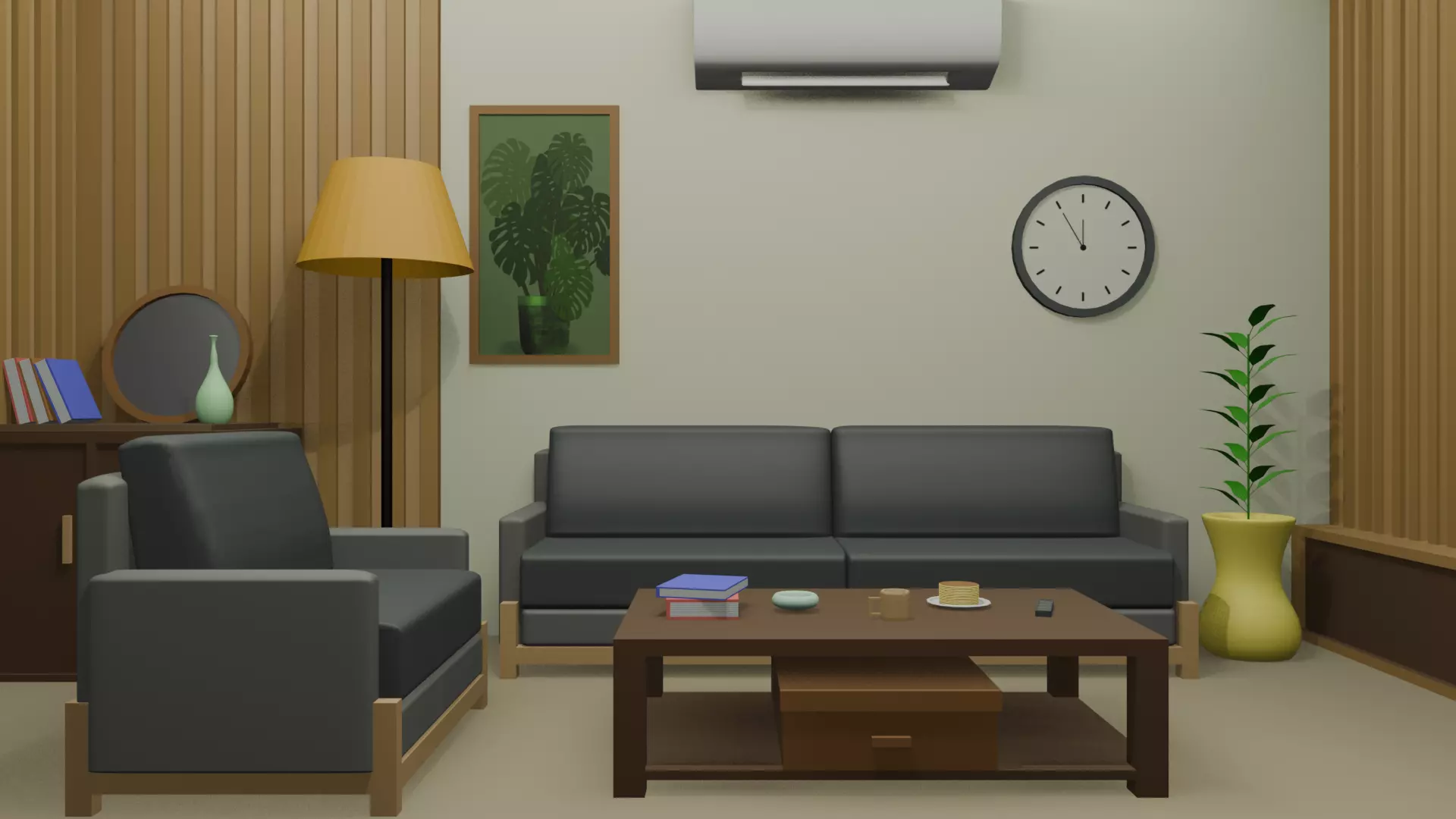 Easily Customizable: The model is created with clean topology and organized materials. You can easily change the paint color, sofa fabric, or wood material to match your specific property unit.