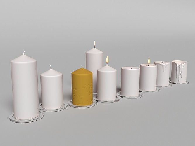 A set of candles.The set includes 9 models of candles, which differ in the shape and materials of the candle, flame and wick.Materials prepared for Corona render and V-ray.