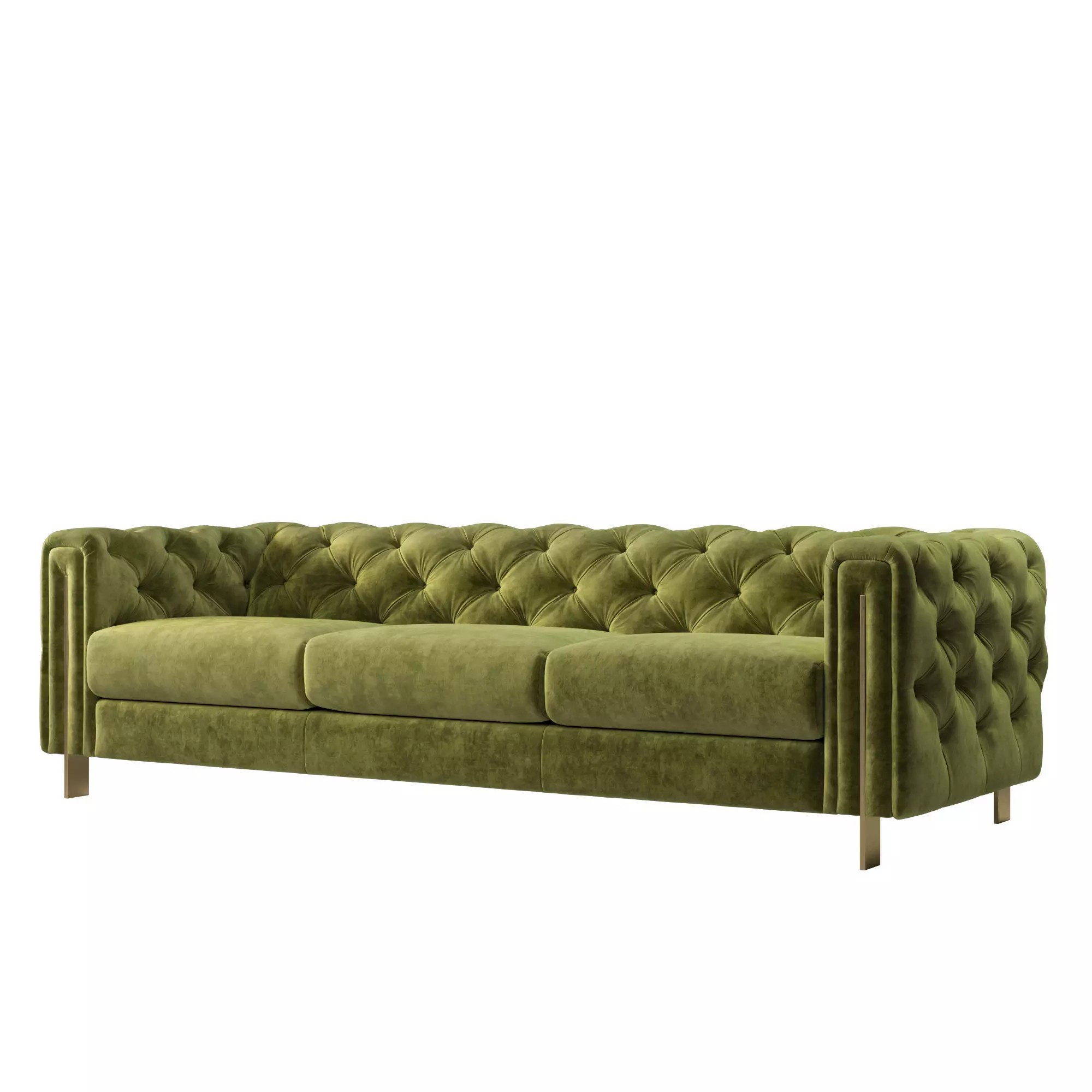 -Acanva Luxury Chesterfield Vintage Sofa, green velvet-Legs, gold metal-Middle leg, plastic black