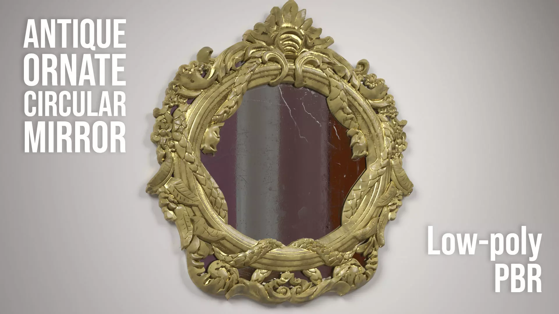 3d Model of an Antique Circularl Mirror. V-Ray displacement mod has been used in conjunction with a displacement map. PBR Metal-rough workflow used. All maps/texture are included.
