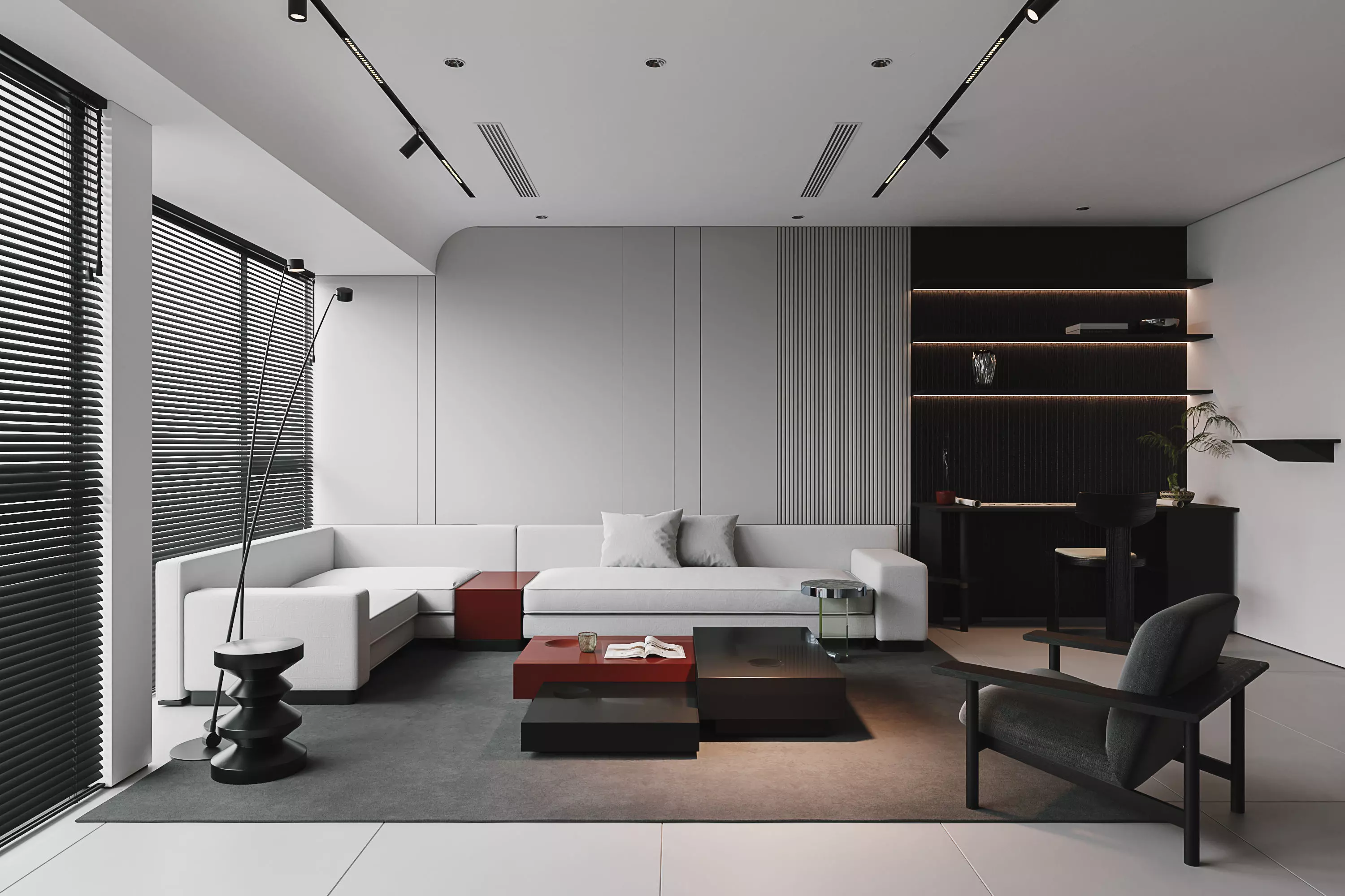 The model has material settings that define how surfaces look (color, shine, transparency, etc.).