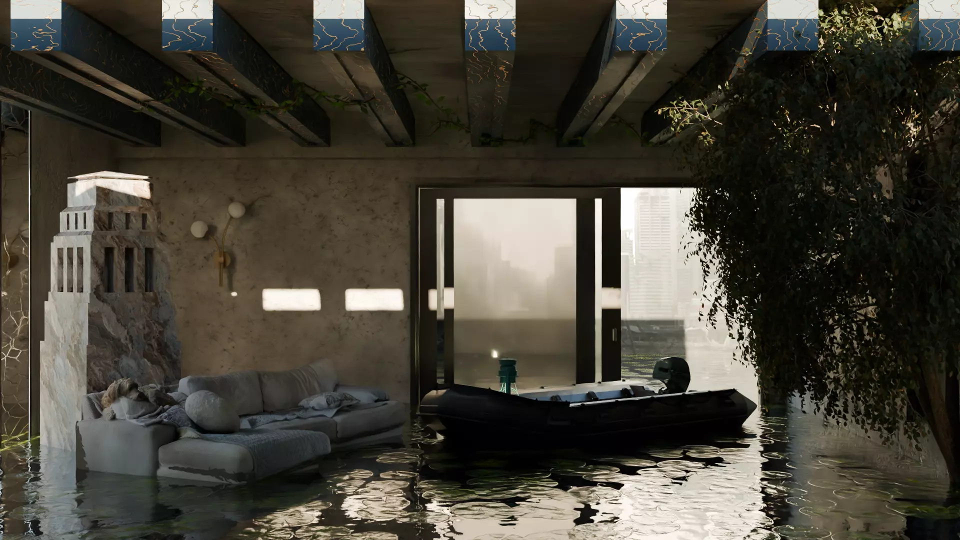 Step into the haunting beauty of decay and elegance with this Apocalyptic Flooded Luxury Interior – a cinematic 3D environment that tells a story of a once-opulent space now overtaken by time and water. Inspired by disaster-struck mansions and submerged architectural grandeur, this detailed interior blends gold-gilded textures, classic luxury furniture, and nature's reclaiming forces. Perfect for games, films, and virtual productions needing a rich visual narrative, the scene captures the dramatic juxtaposition of high society’s downfall in a post-apocalyptic world.