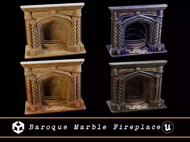 Baroque Marble Fireplace - 4 Variations Low-poly 3D model