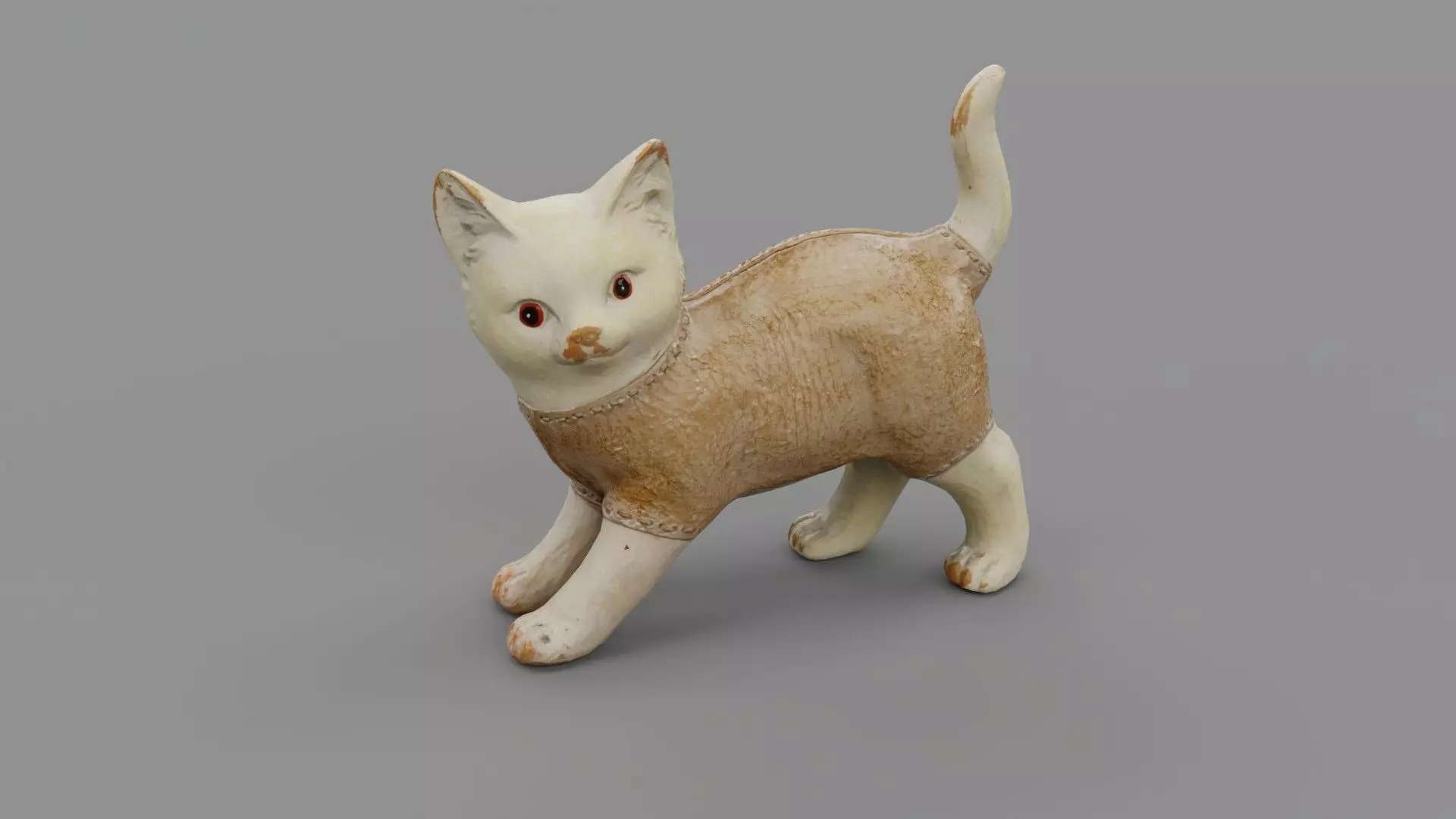 This is a photorealistic low-poly 3D model of the handmade cat wood statuette.