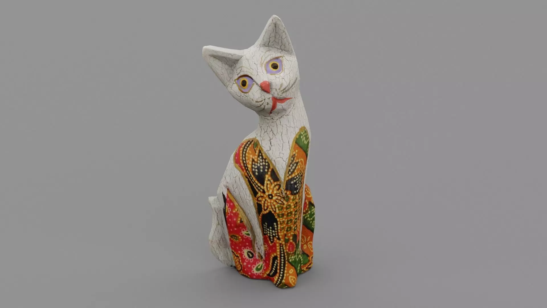 This is a photorealistic low-poly 3D model of the handmade cat wood statuette.
