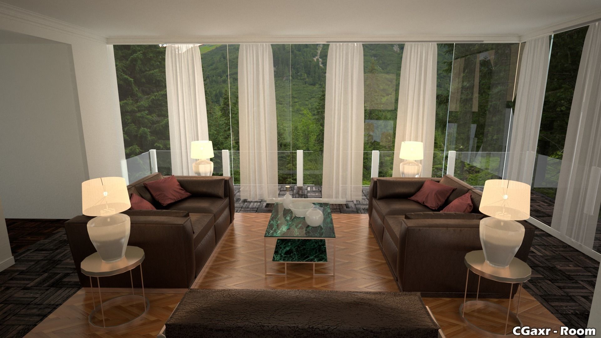 The model has material settings that define how surfaces look (color, shine, transparency, etc.).