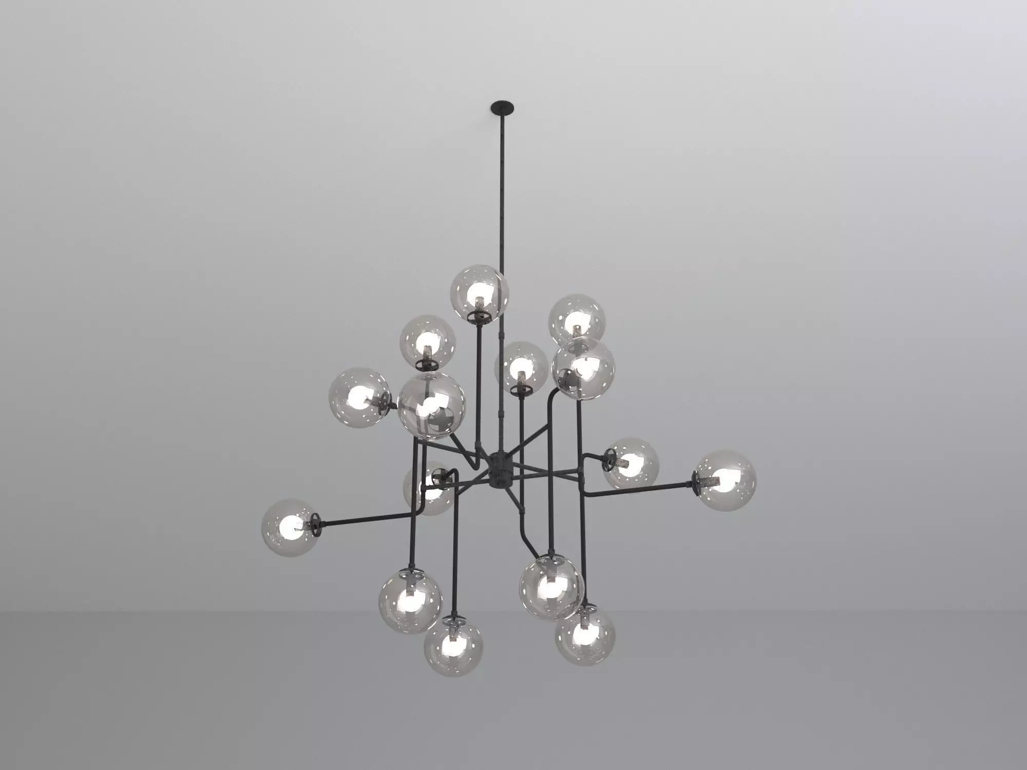 Hanging 16 bulb chandelier. Dimenions 44.74"H x 44.75"W x 44.75"L. Materials made with V-Ray. Easily modeified to different dimensions.