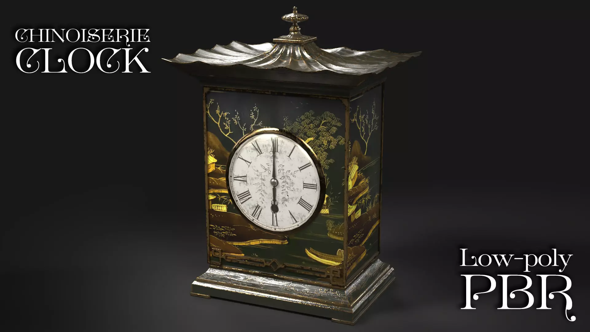 A 3D lowpoly model of a chinoiserie antique clock. V-Ray ready renders, PBR material included. Great for Archviz renders and game engines!
