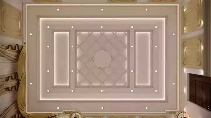 This classic-style false ceiling 3D model features a timeless and sophisticated design, ideal for adding elegance to any interior space. The model showcases intricate detailing, including ornate molding, decorative cornices, and subtle texturing that evoke a sense of vintage luxury. It is designed with precision to incorporate recessed lighting and concealed wiring, offering both aesthetic beauty and functionality. Crafted from high-quality materials such as gypsum board or plaster, this model captures the essence of traditional craftsmanship with its delicate patterns and smooth, refined finish. Perfect for rendering in grand living rooms, dining areas, or other upscale interiors, this 3D model brings a touch of opulence and style to your design projects.