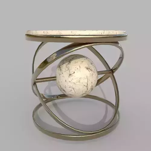 This elegant 3D model features a luxurious round side table with a marble top and central marble sphere, supported by curved golden metallic rings. Ideal for high-end interior visualizations, it’s optimized for rendering and real-time applications with clean geometry and refined materials.