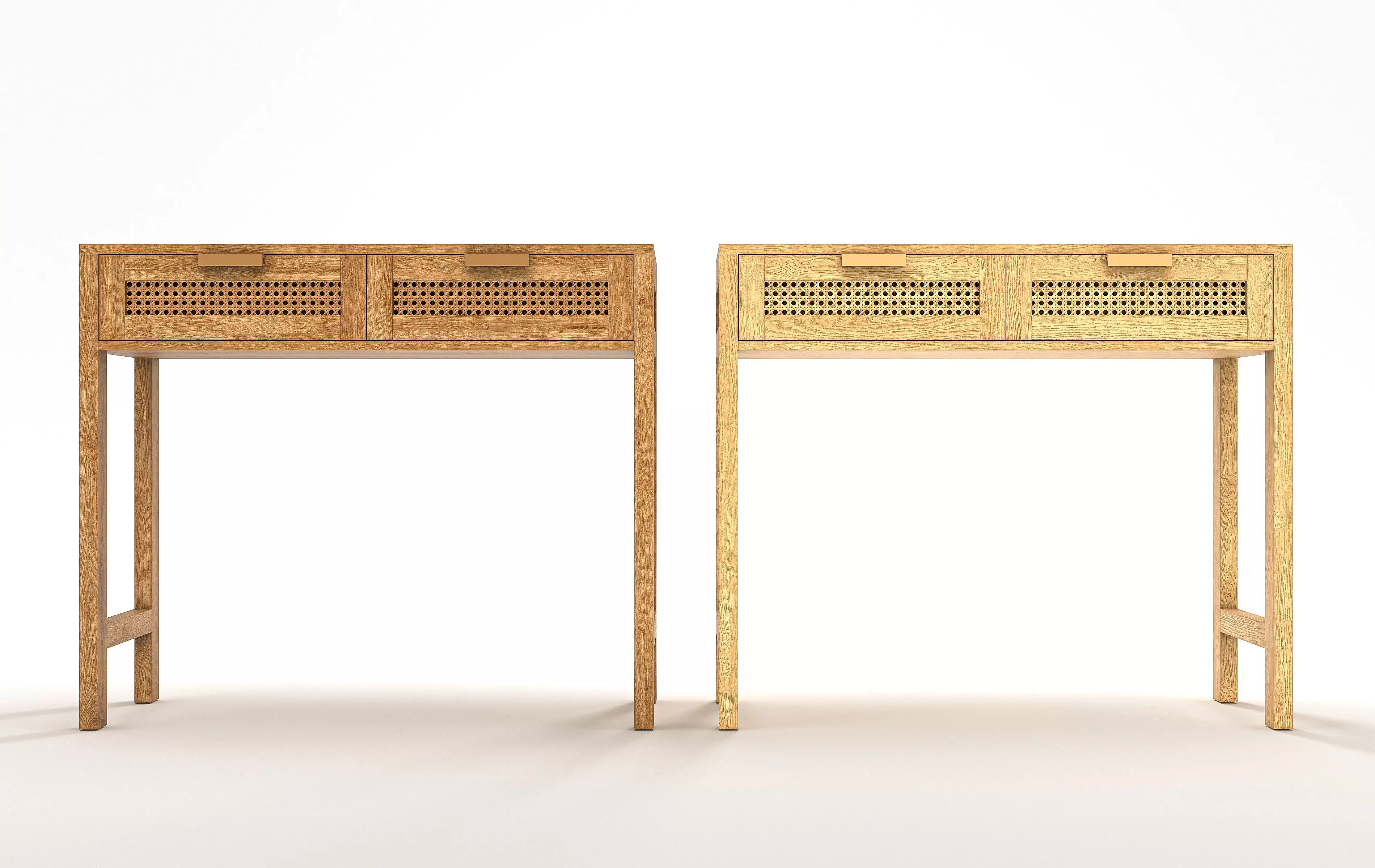A high-quality wooden console table featuring two spacious pull-out drawers with intricate woven rattan inserts. Designed with a minimalist yet elegant aesthetic, this piece is perfect for Scandinavian, boho, and eco-style interiors. The clean lines and natural materials make it a versatile addition to any modern or classic living space.