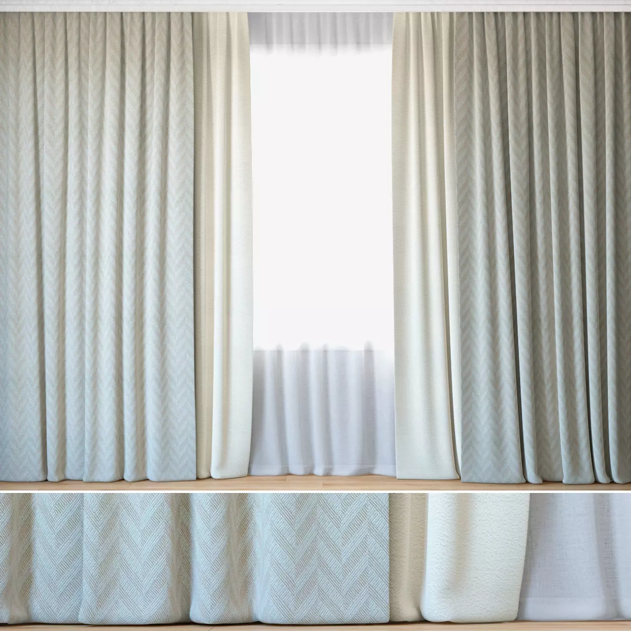 The archive has:4 blackout curtains with two types of fabric from Jacquard Fabric from the Lazarus series and ROHI from the Sera series;Semi-transparent tulle;All textures;MAX 2013 (V-Ray 3.60);FBX_V-ray;