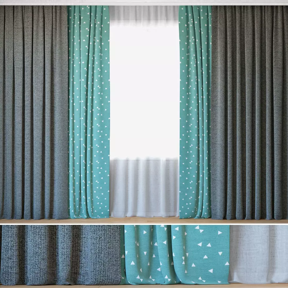 Curtains 25 Curtains with Tulle Sunrough and Ottoman Triangles 3D model
