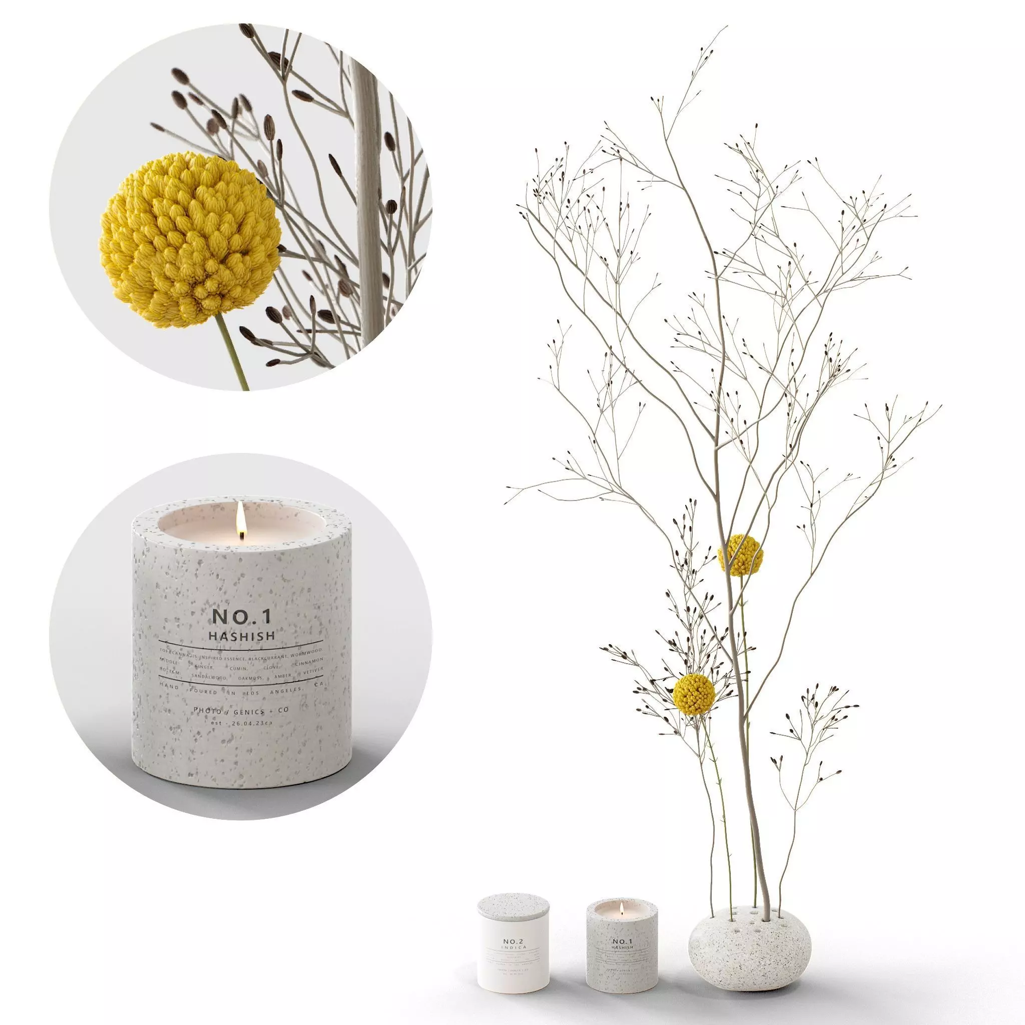 Decor Craspedia and candles Set 58 3D model