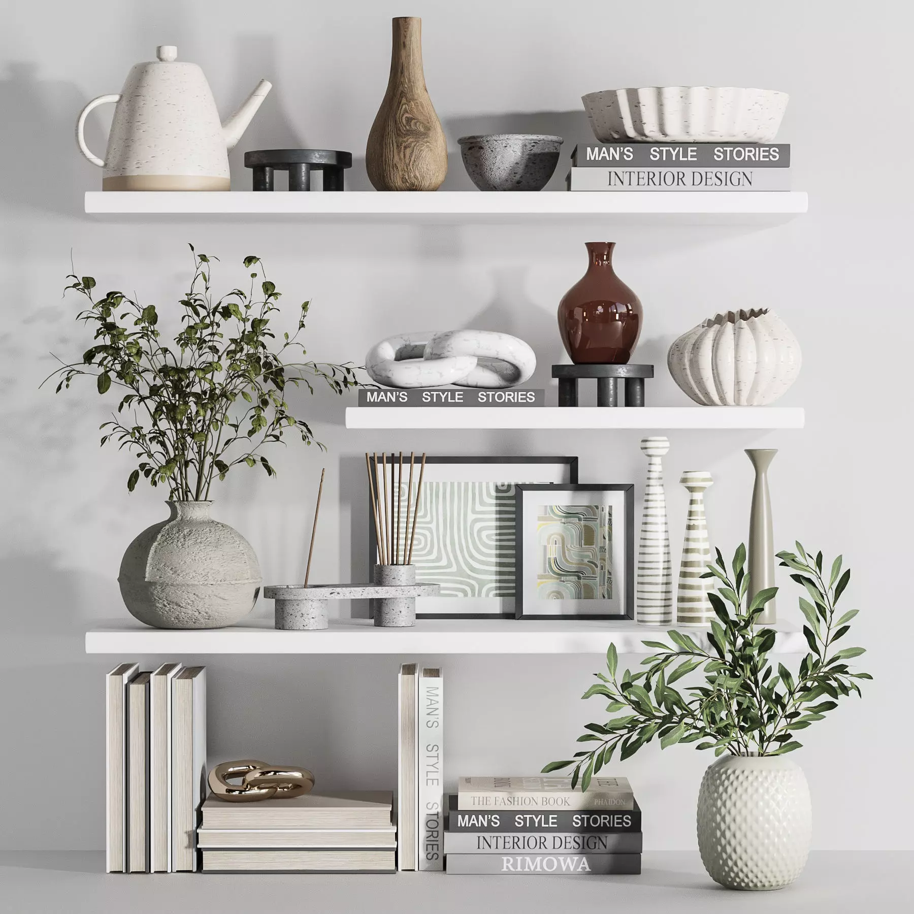 The model has material settings that define how surfaces look (color, shine, transparency, etc.).