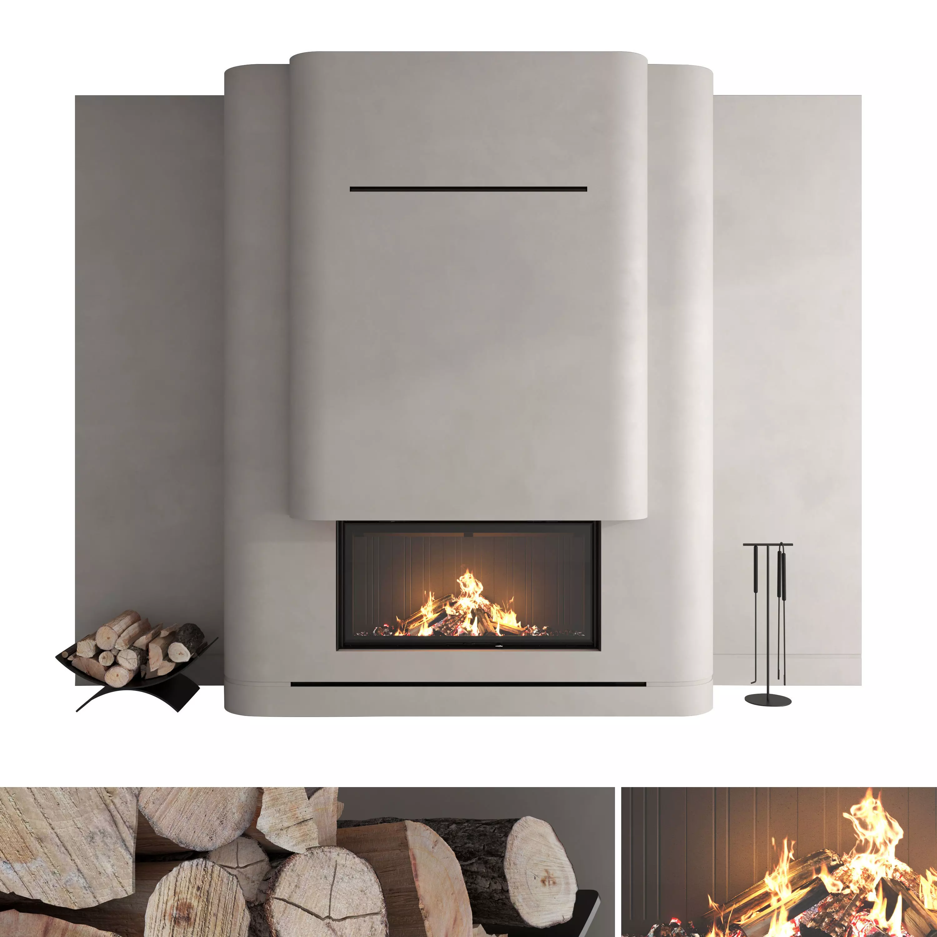 Fireplace Romotop IMPRESSION 2G L, firewood.Size of canvases: W.4000mm x H.3000mm.