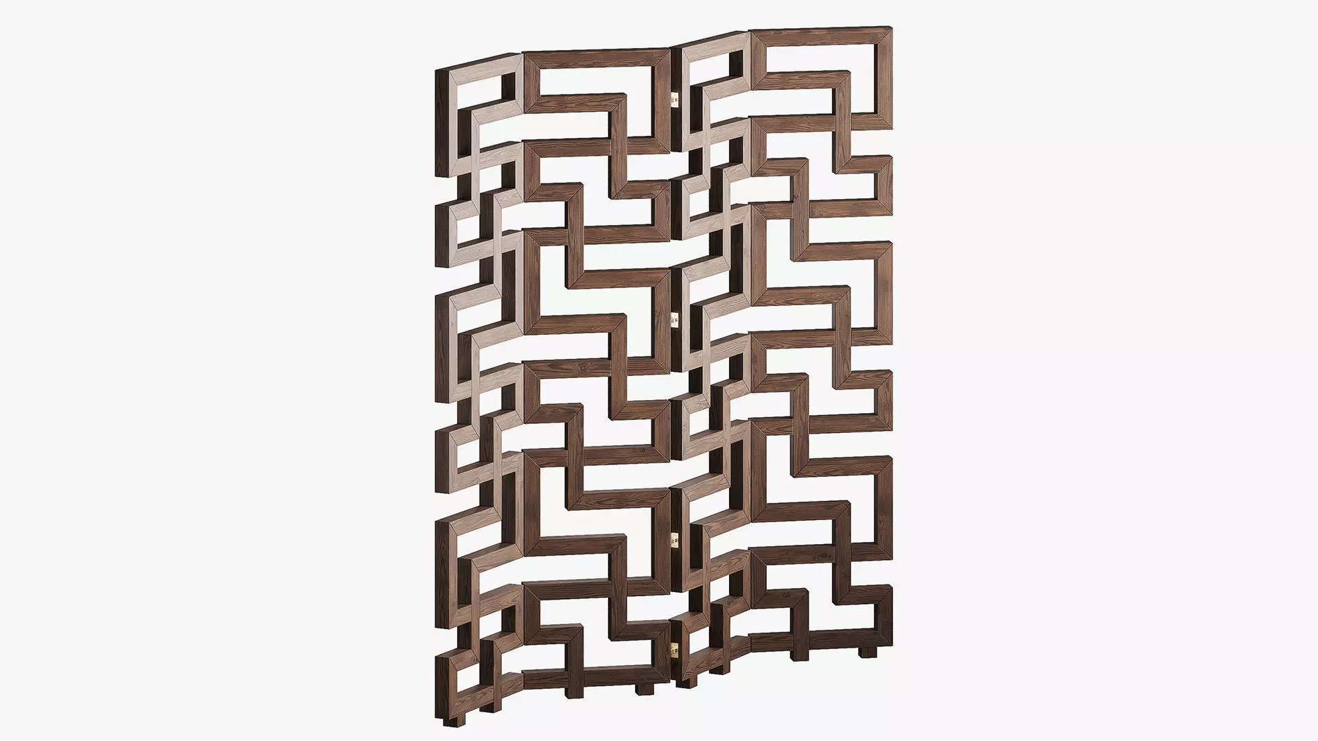 Four-panel dark wood screen based on a French model from the 1950s-1970s. Width of each panel: 450 mm. Thickness: 50 mm. Screen height: 1950 mm.