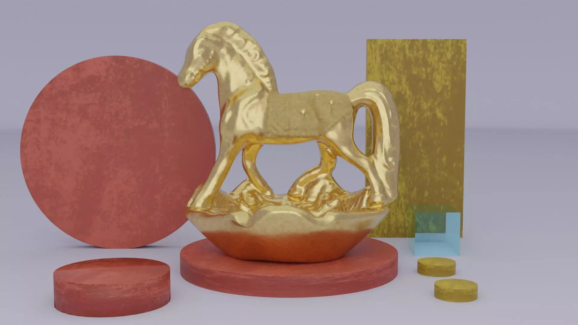 Gold horse ashtray high-poly 3D model