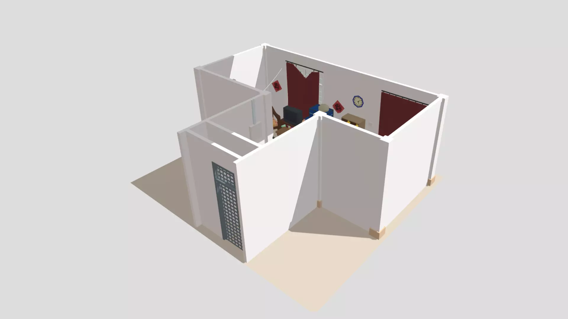 The model has material settings that define how surfaces look (color, shine, transparency, etc.).