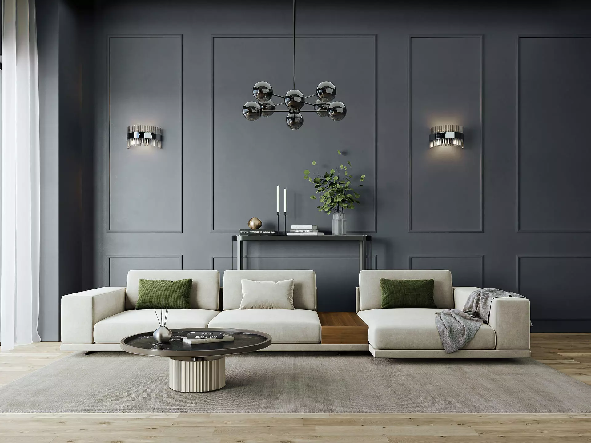 This scene showcase a clean, contemprary design with modern furniture, soft materials and an airy layouts. This interior is ideal for architects visualization or product presentation.