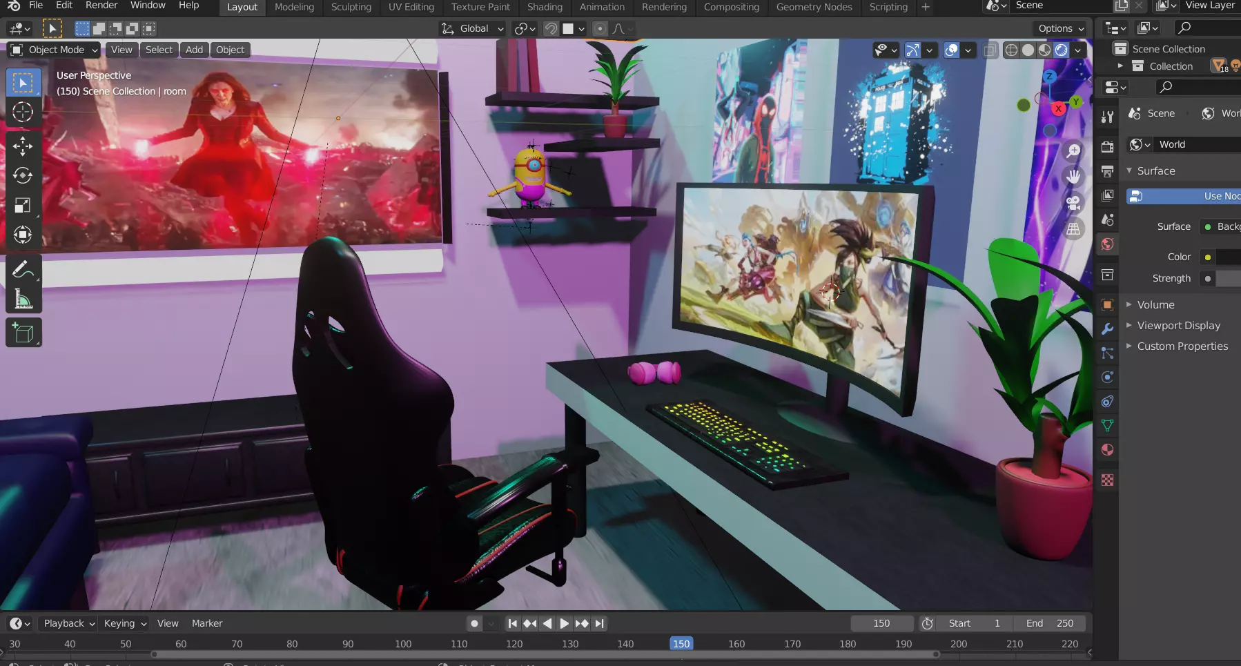 The model has material settings that define how surfaces look (color, shine, transparency, etc.).