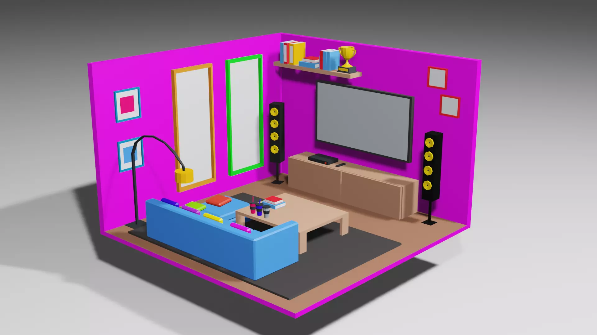 3d low poly amazing fantastic room interior modular and Mobile friendly can be used for any type of projects