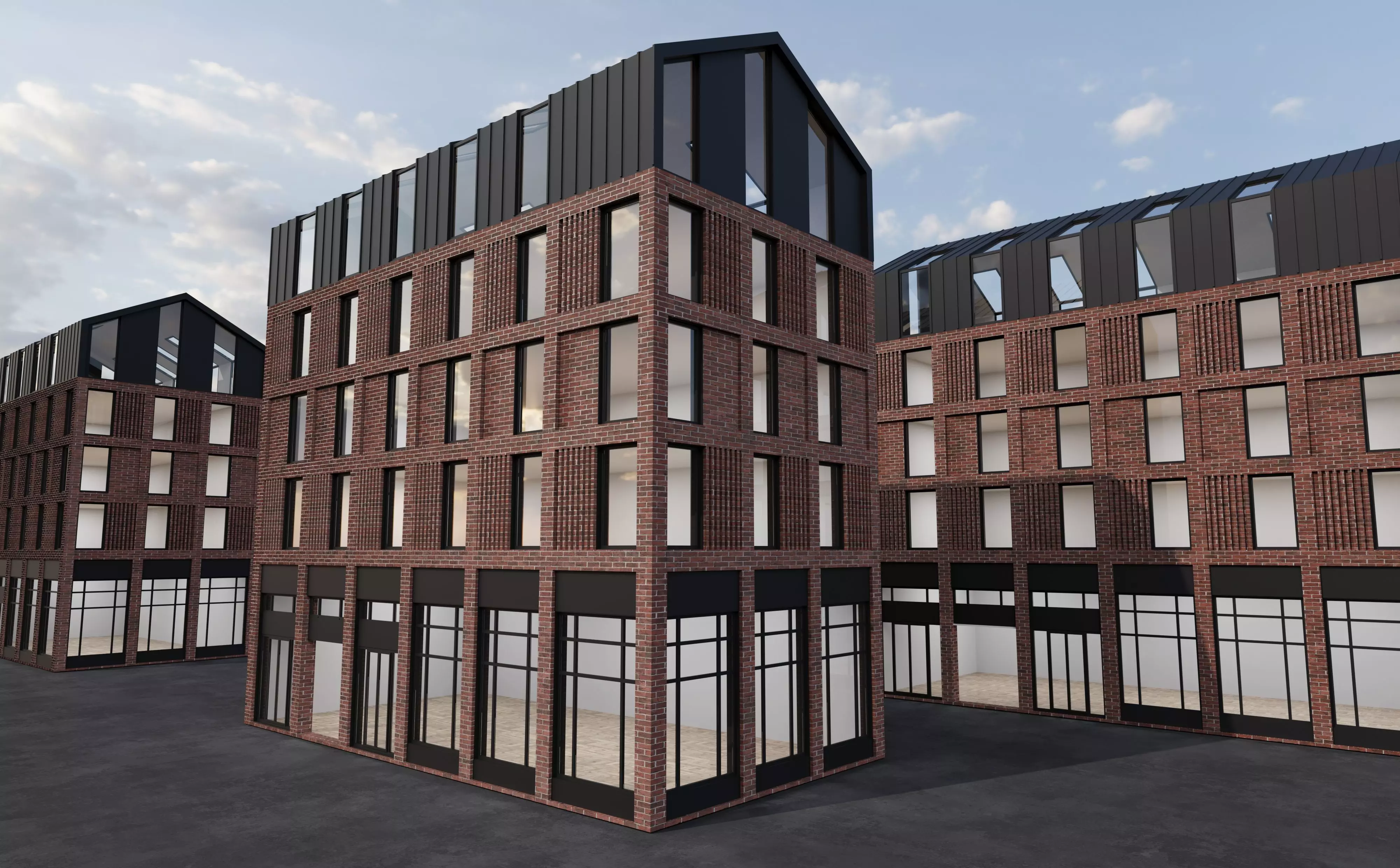 Label ResidenceModern Brick Mixed-Use Building – Game Ready / Interior ReadyHigh quality modern brick building complex designed for architectural visualization, games and virtual environments. Model features a detailed exterior with realistic brick façade, black metal roof panels and large storefront glass openings on the ground floor.The model is prepared for interior baking workflow. Interior spaces are clean and optimized, ready for lightmap baking and additional interior detailing. All textures are properly applied and organized inside Blender.Features:Created and organized in BlenderClean topologyOptimized geometryRealistic brick materialGlass storefront systemMetal roof panelsModular structureReady for interior light bakingUV mappedTextures includedFile formats included:BLENDFBXDAE