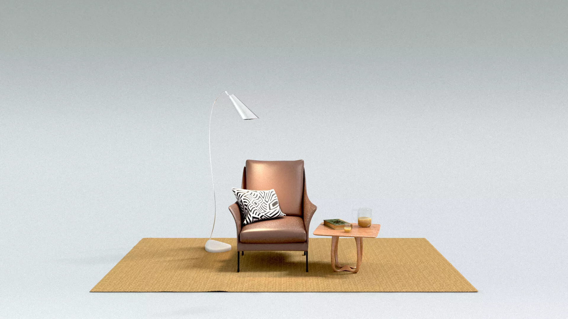 The model has material settings that define how surfaces look (color, shine, transparency, etc.).