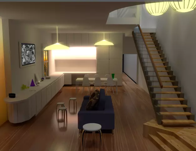 The model has material settings that define how surfaces look (color, shine, transparency, etc.).