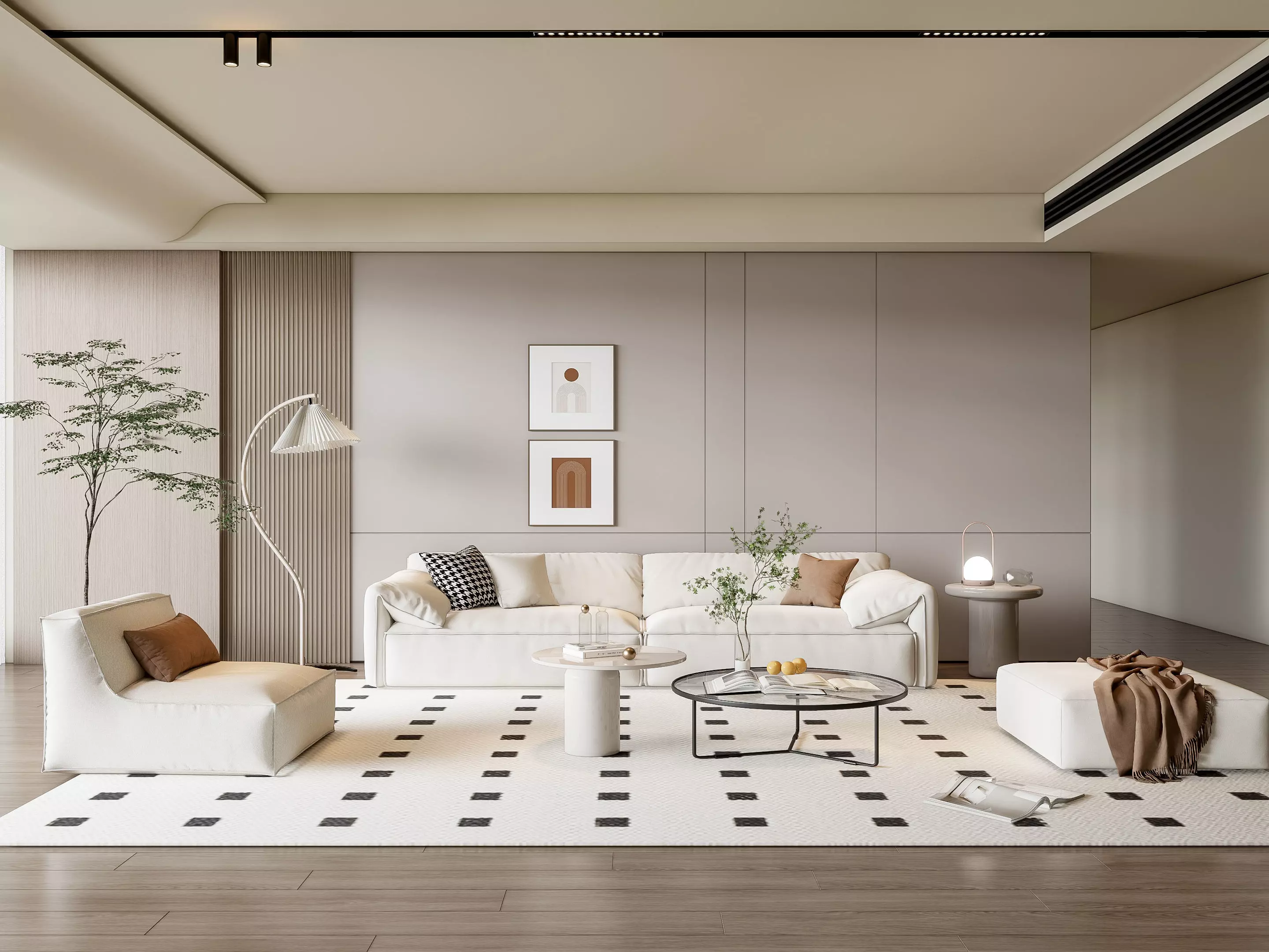Enhance your design projects with this elegant 3D model set of a living room interior. This collection features a meticulously crafted layout, including high-quality textures and detailed elements such as a stylish sofa, coffee table, armchairs, media console, rugs, lighting fixtures, and decorative accents. The design balances comfort and sophistication, making it ideal for visualizing contemporary, classic, or minimalist living spaces. Each piece is designed with both aesthetics and functionality in mind, offering a cozy yet refined atmosphere. Fully customizable, you can adjust colors, materials, and furniture arrangements to fit your specific design vision. Compatible with popular 3D software, this model set ensures seamless integration into your projects. Perfect for interior designers, architects, and 3D artists, this living room set helps you bring to life stylish and inviting residential spaces. Whether you're designing a modern apartment, a luxury home, or a cozy family room, this 3D model set provides the essential elements to create visually stunning and functional living areas.